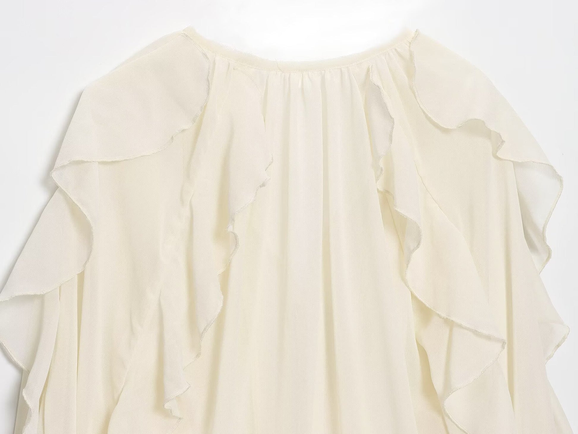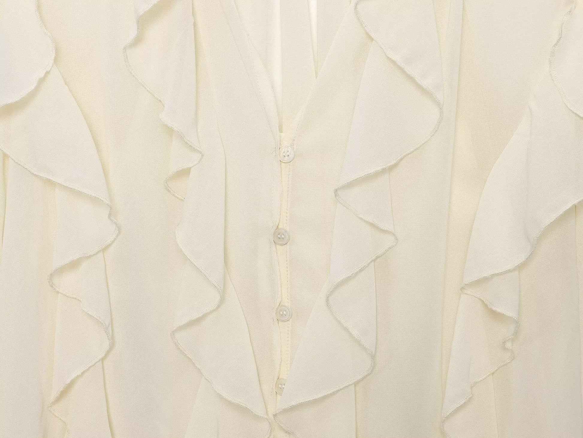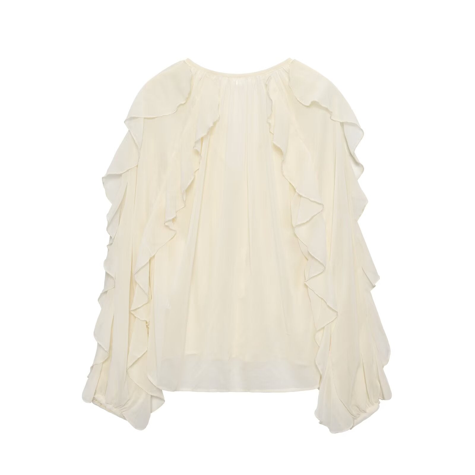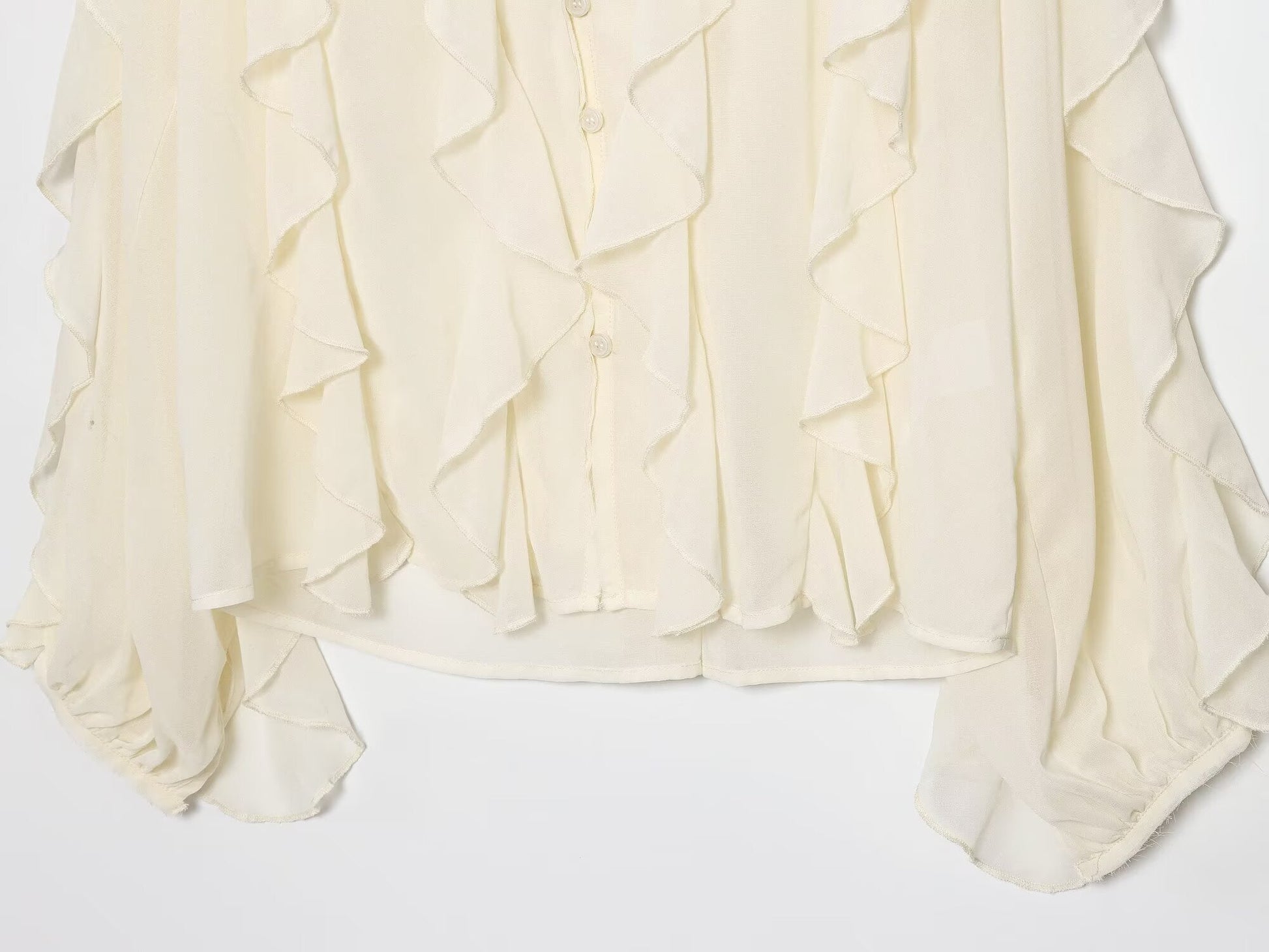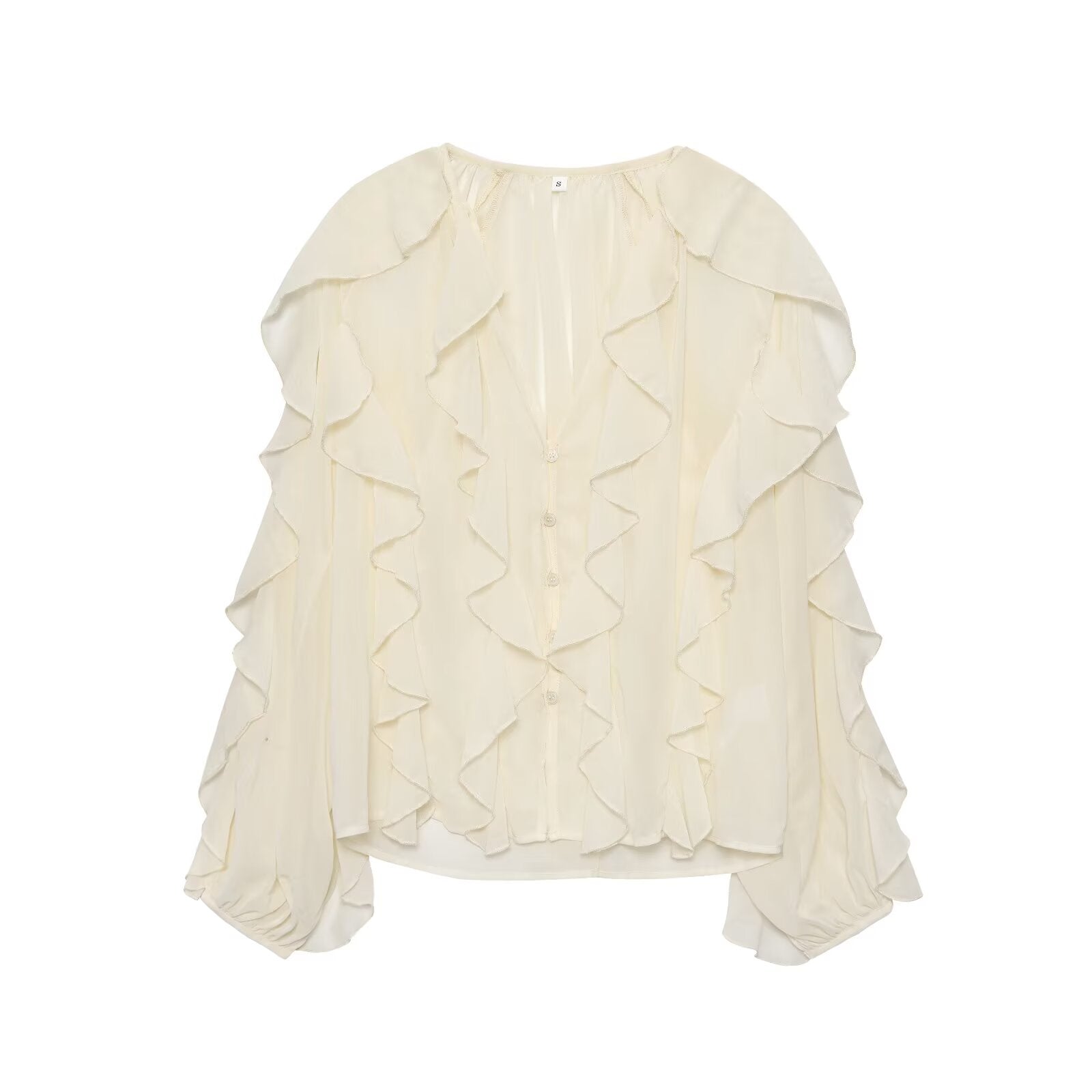 2025 Women's new fashion ruffled V-neck long sleeved shirt