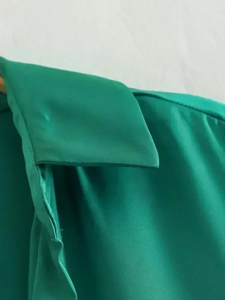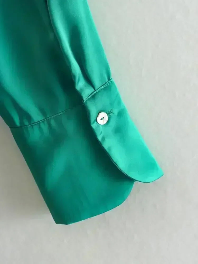 22 Women 2024 New Fashion Flowy Satin Loose Shirts Blouses Vintage Long Sleeve Button-up Female Shirts Chic Tops
