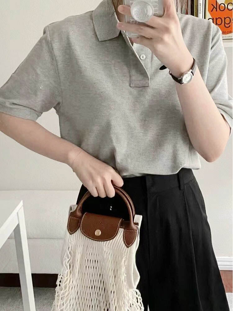Men's and women's new Joker Couple style cotton beaded fabric embroidered POLO shirt