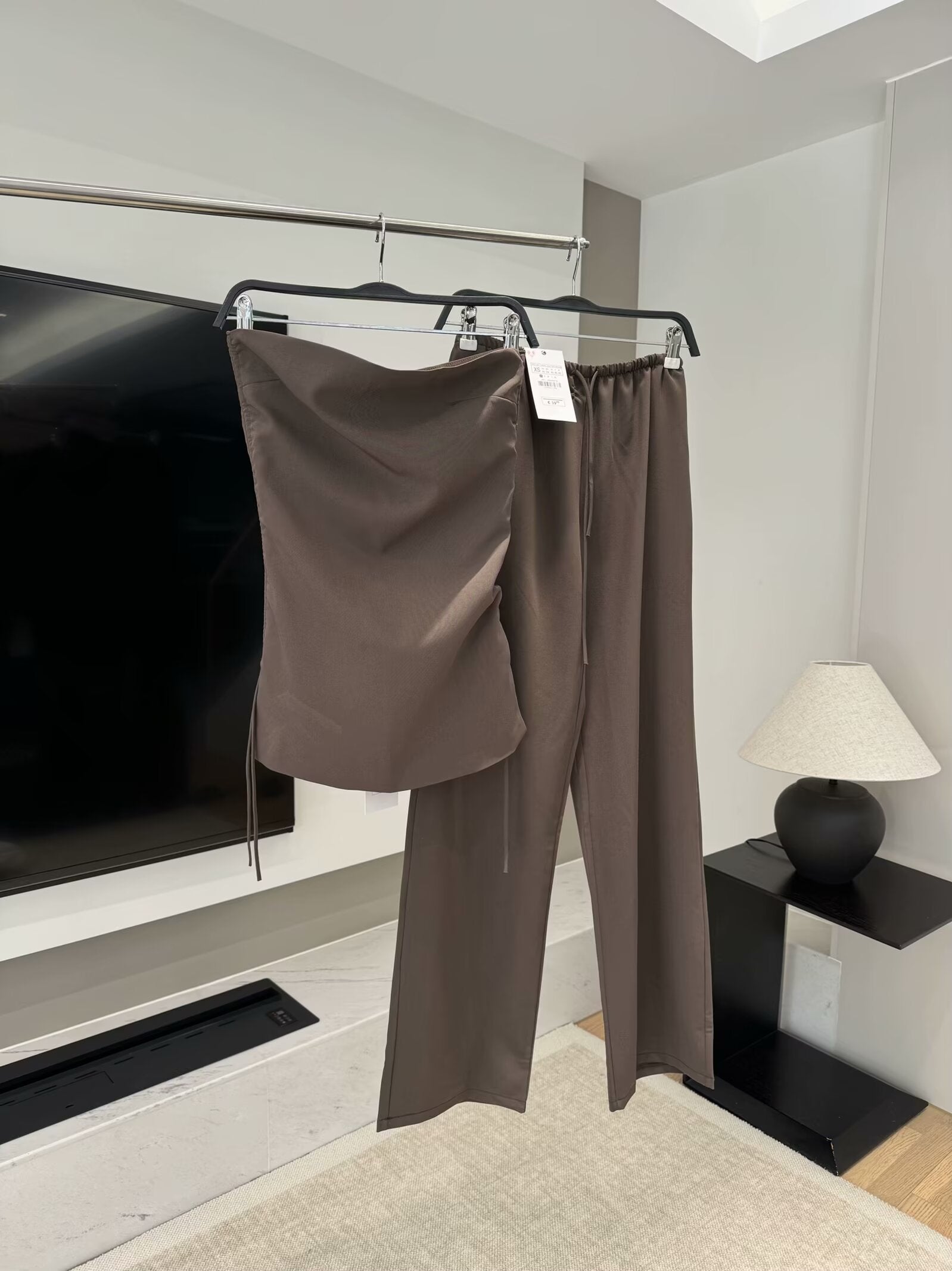 set woman 2 pieces2025 Fashion Vertical tube top Vintage Female + Pants Women's suit