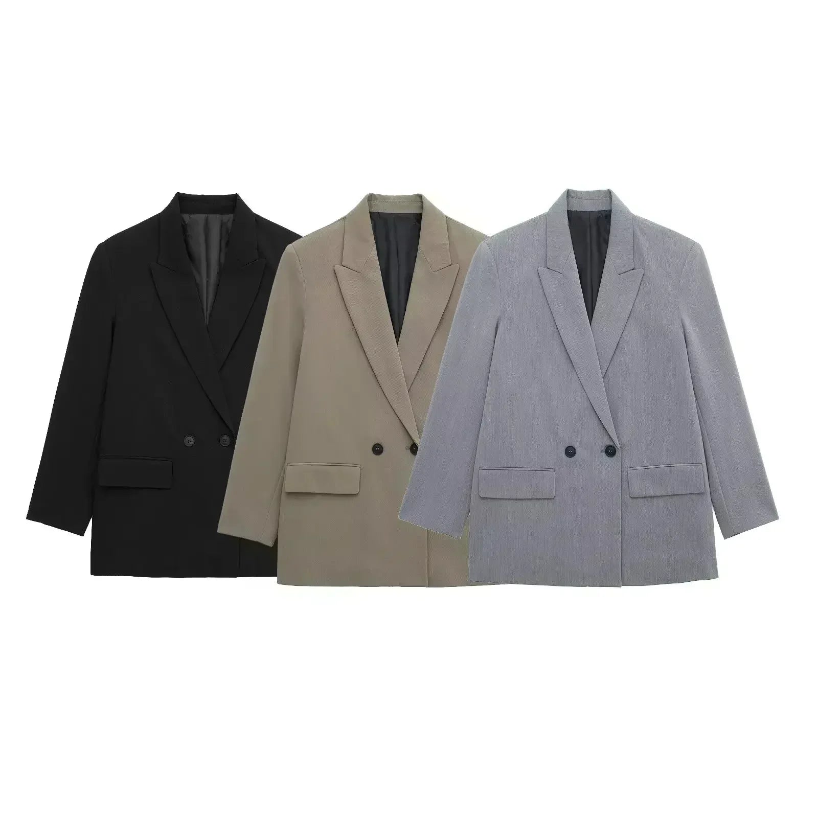 Women 2024 spring New Fashion turndown collar loose Blazer Coat Vintage Long Sleeve Pockets Female Outerwear Chic