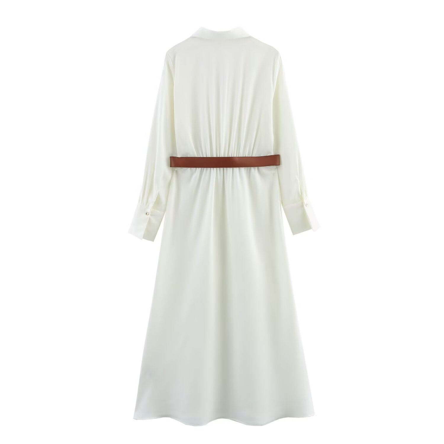 Women 2025 Autumn New Fashion Wear a belt shirt style Dress Vintage Long Sleeve Female Dresses