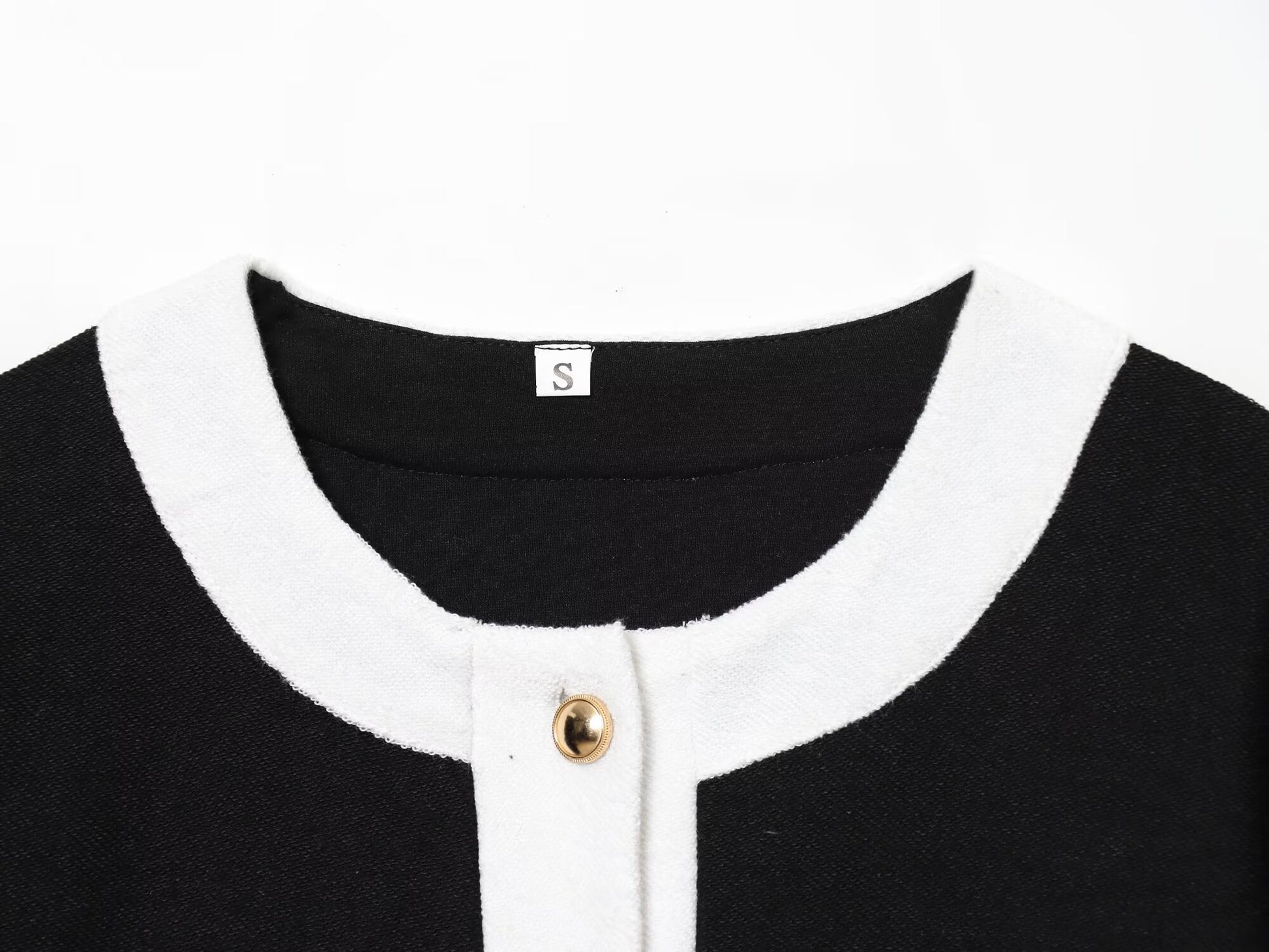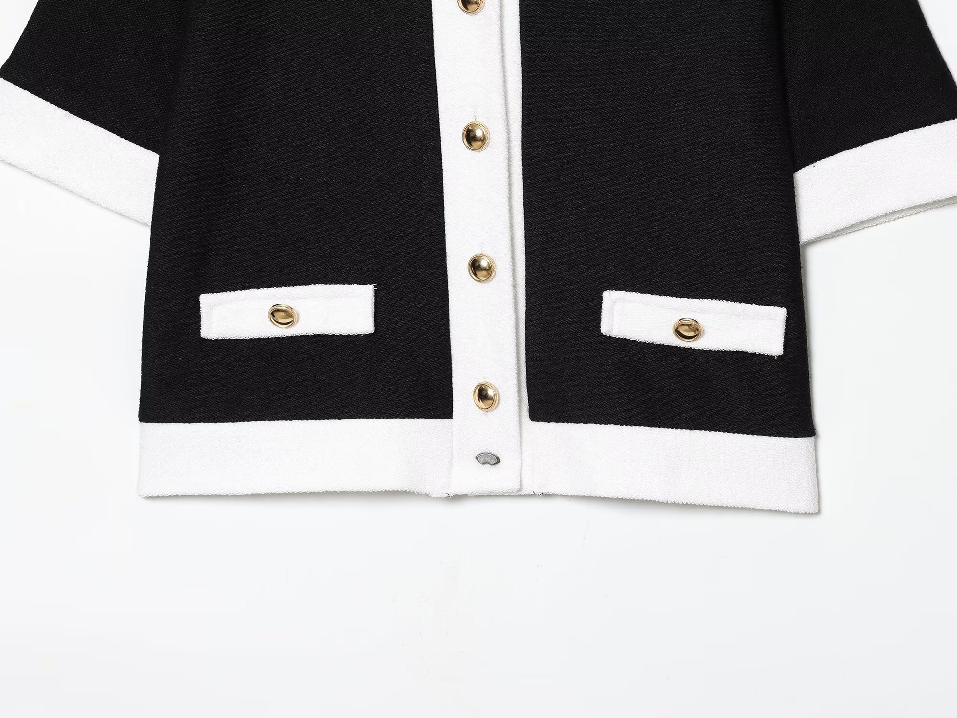 Women's 2 pieces short sleeved contrasting woolen Coat+Pants