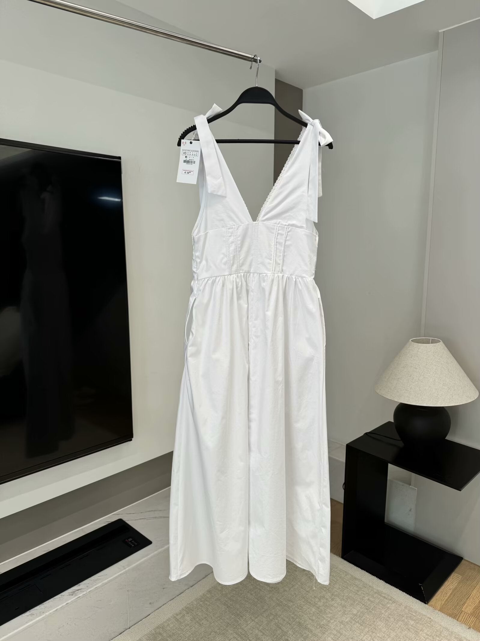 Women's 2025 chic fashion bow decorated poplin long dress retro sleeveless women's dress