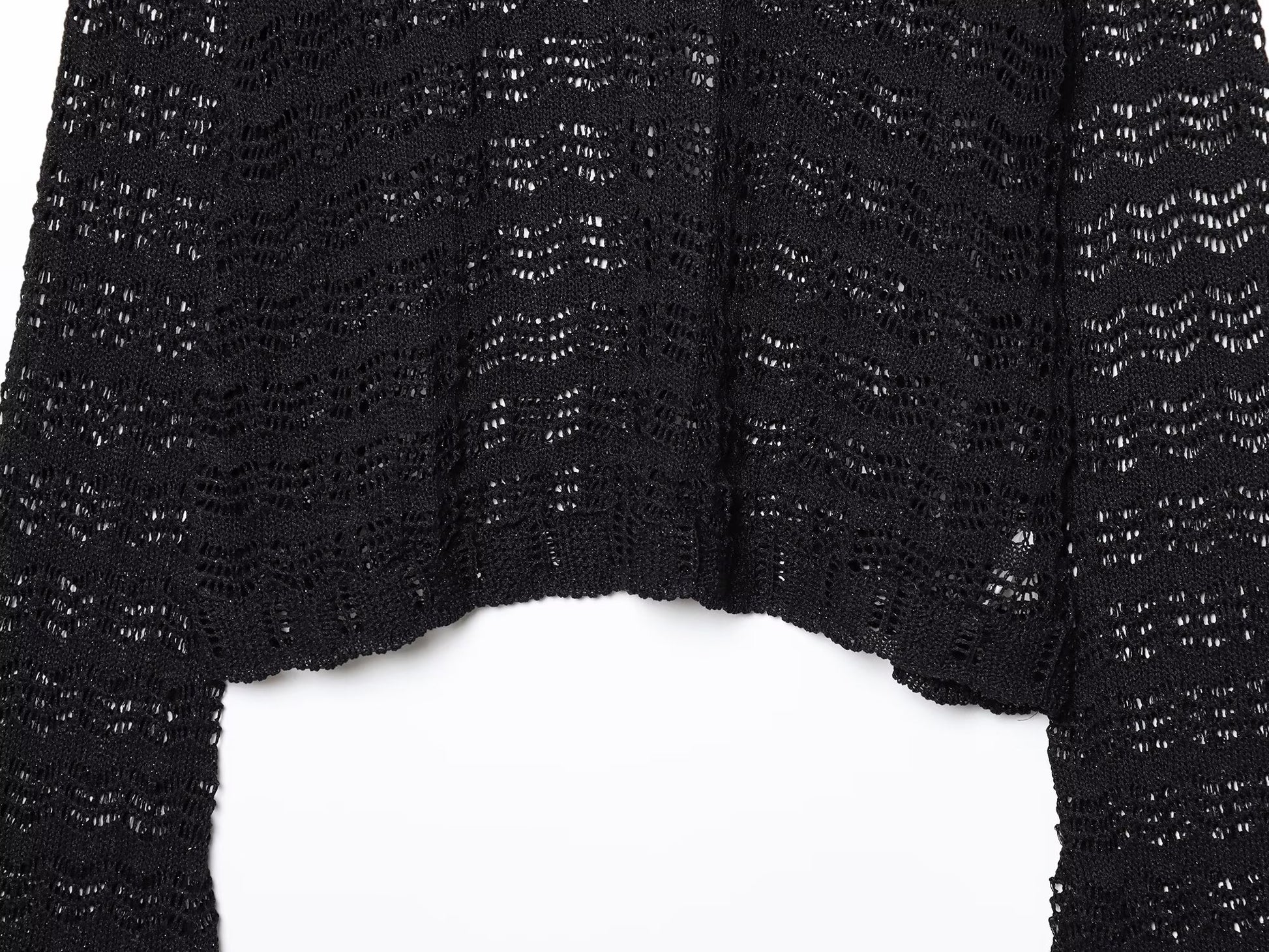 Women's 2025 New Fashion Long Sleeve Jacquard Mesh Short Knitted Top