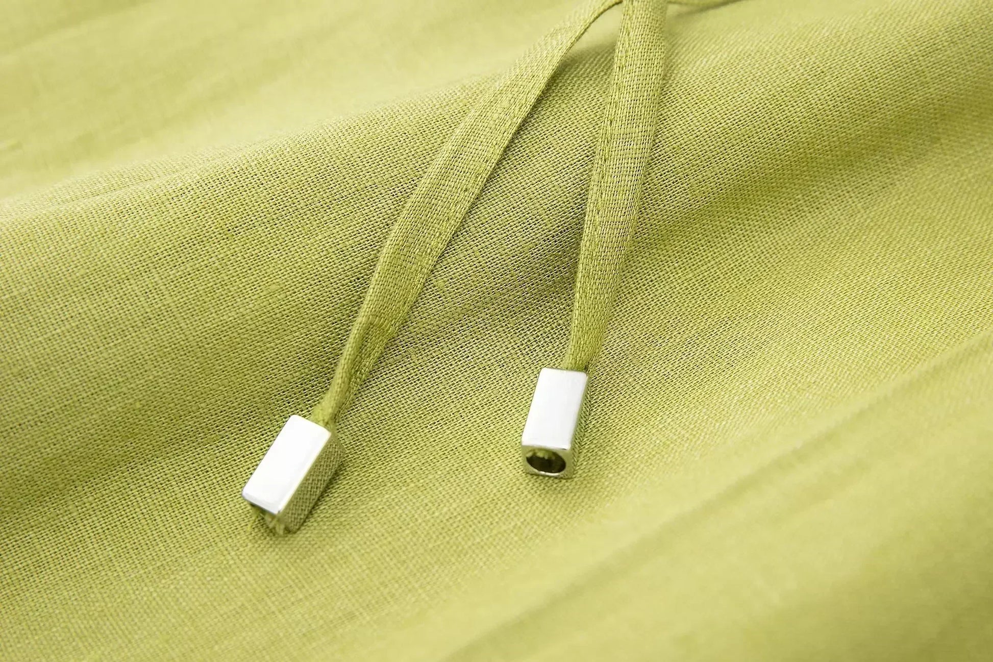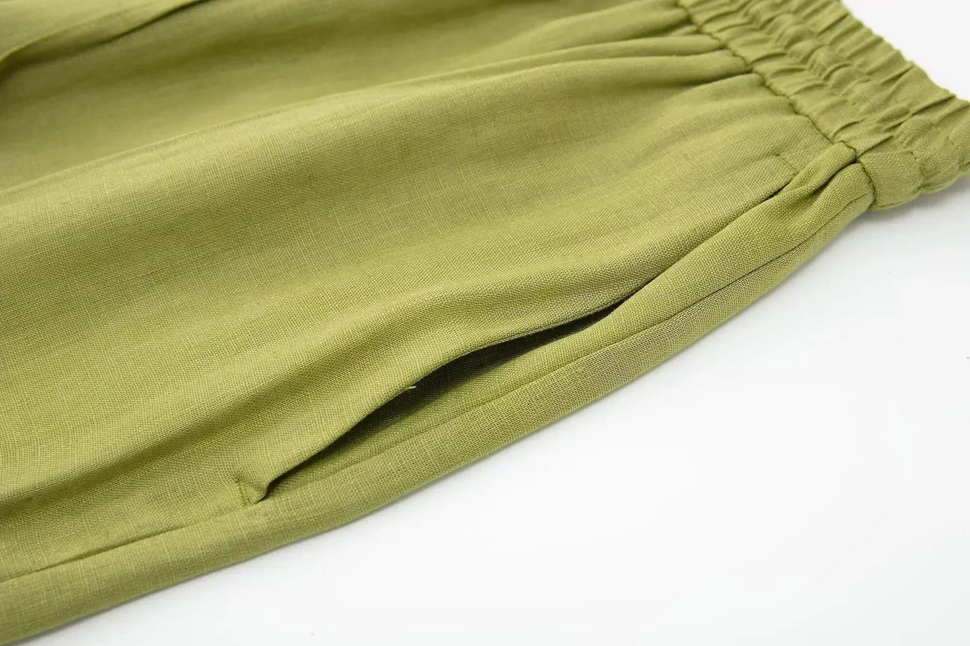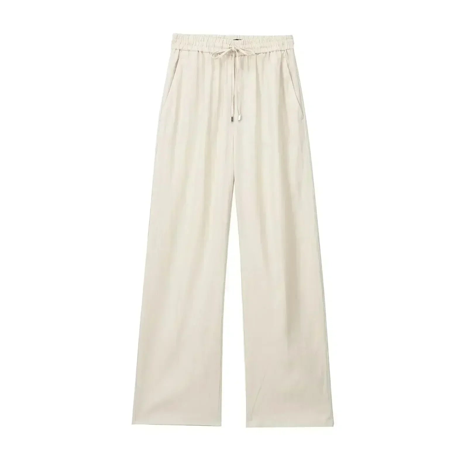 Women's New Chic Fashion Loose Side Pocket Linen Blended Wide Leg Pants Retro Elastic Waist Drawstring Women's Pants Mujer