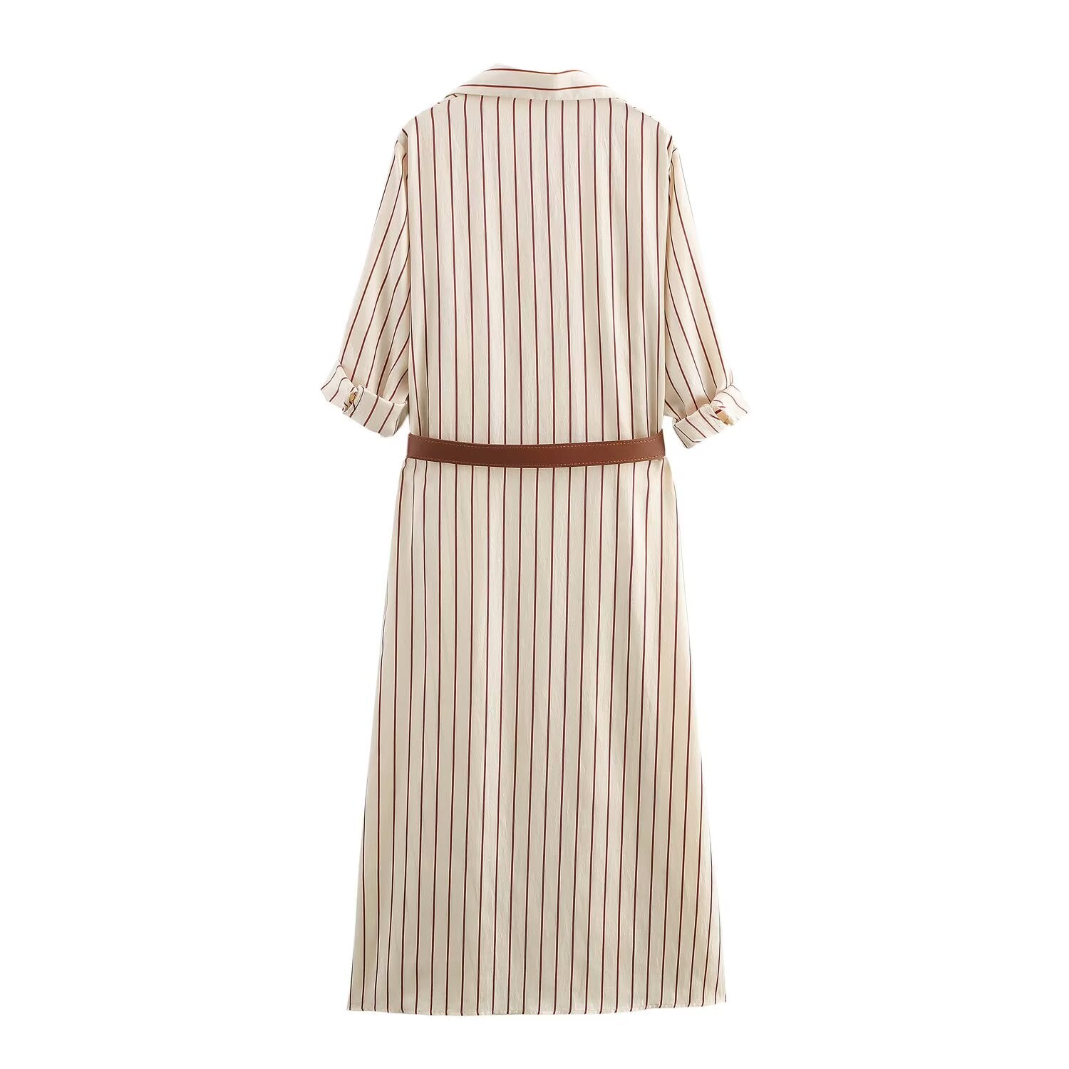 Women's new chic Fashion With Belt loose single breasted striped shirt style MIDI dress retro short sleeved pocket women's dress Mujer