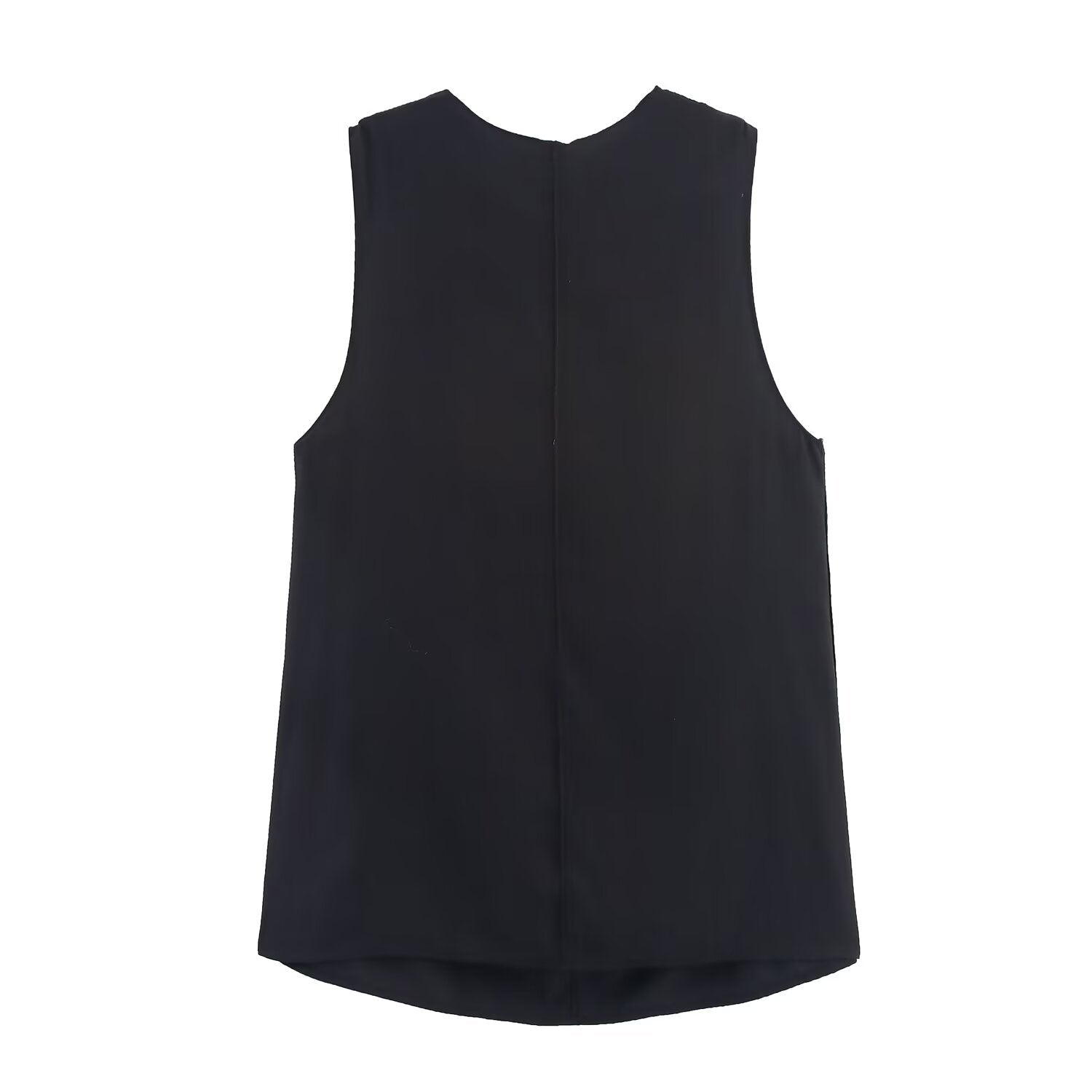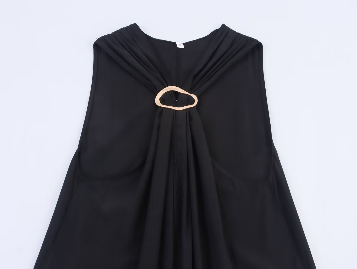 Women's new fashion brooch decoration sleeveless hanging neck top