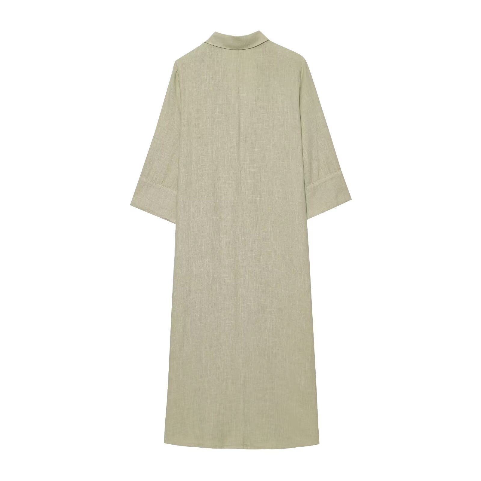 Women's new fashion buckle decoration loose linen blend shirt style MIDI dress