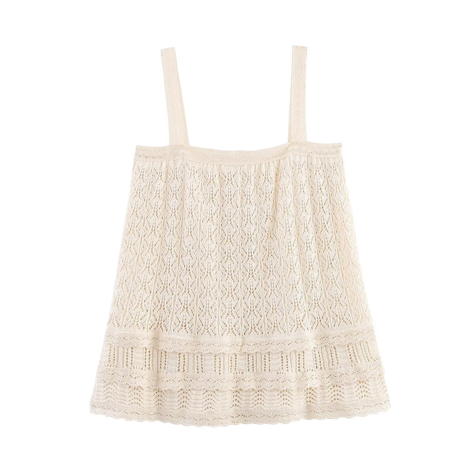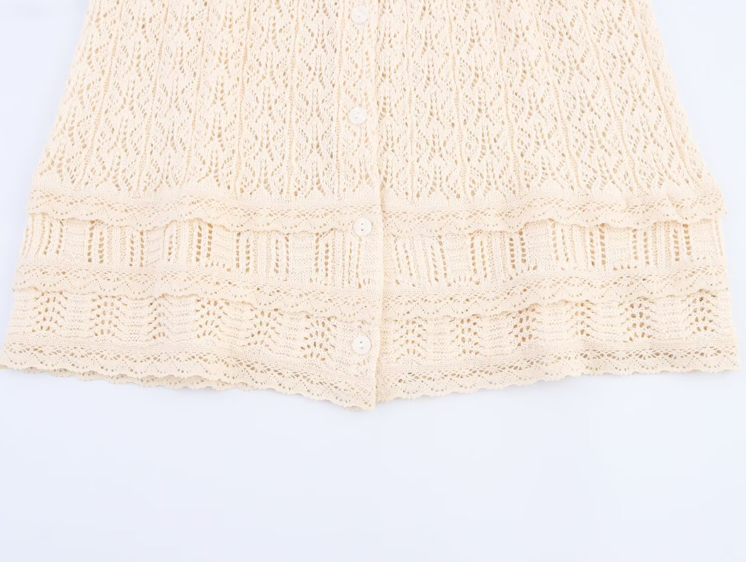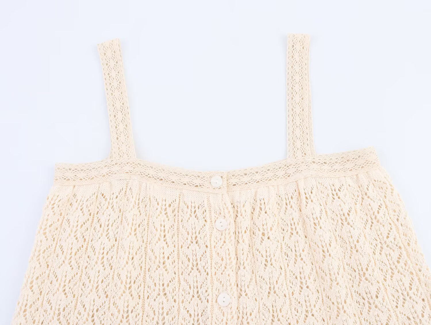 Women's New Fashion Button up decoration Mesh Jacquard Knitted suspender Top