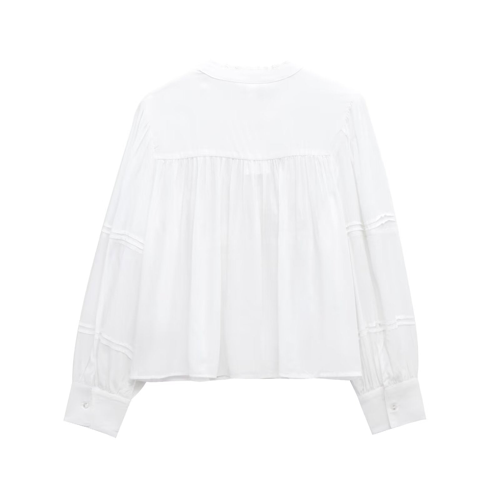 Women's new Fashion casual single breasted fine pleated lace shirt