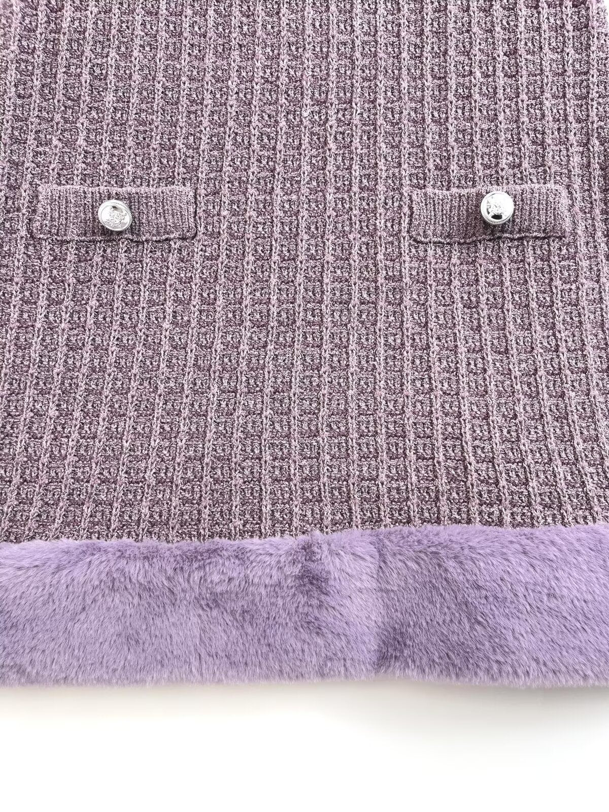 Women's new fashion faux fur effect short sleeved knitted mini dress