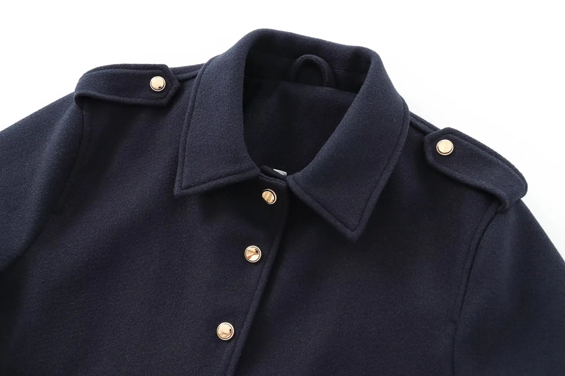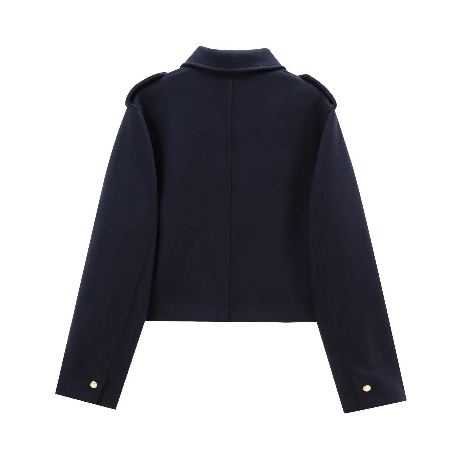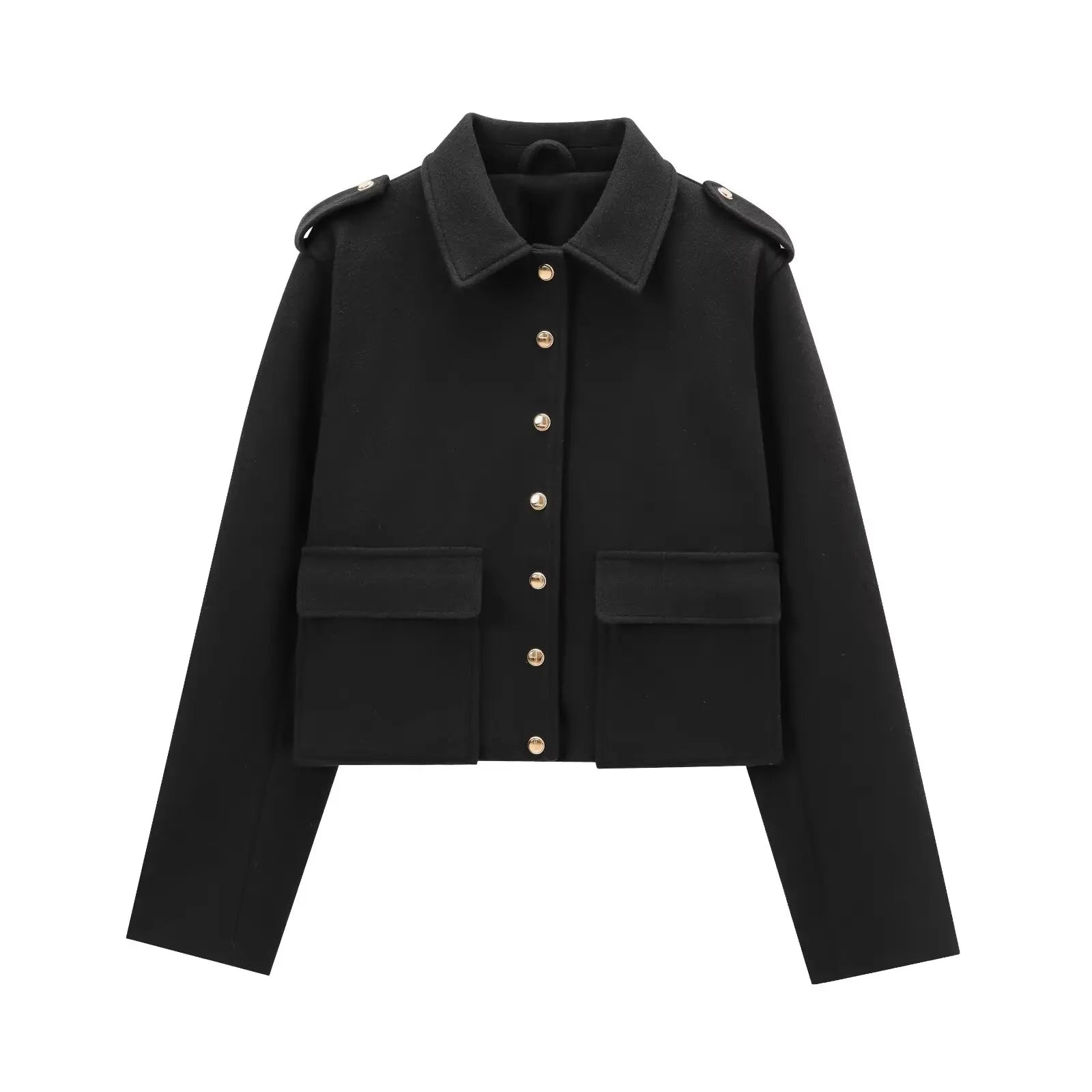 Women's new Fashion flip pocket decoration short single breasted soft texture jacket retro long sleeved women's coat chic top