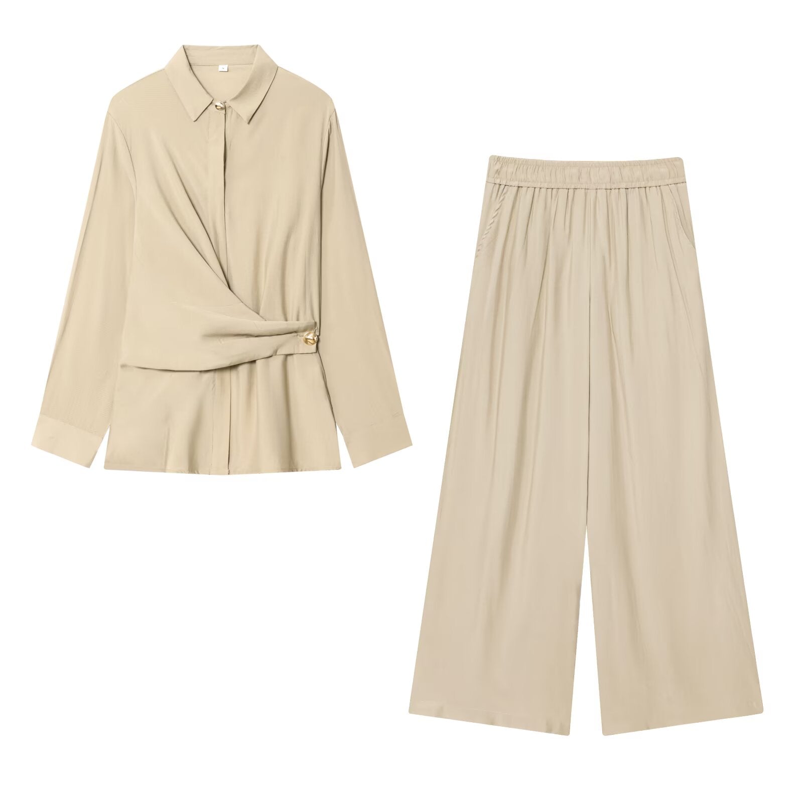 Women's New Fashion gold button long sleeved shirt+Pants suit