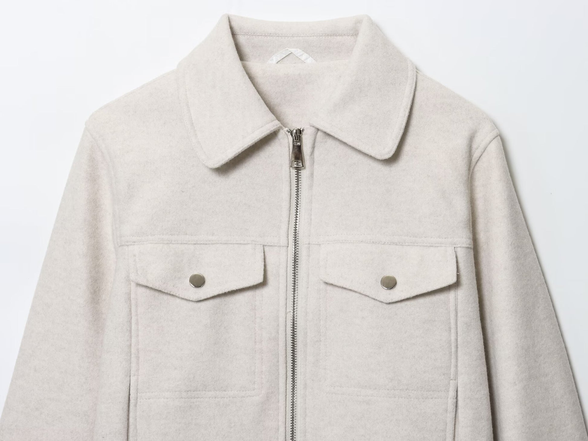 Women's new fashion long sleeved soft textured zipper jacket Coat