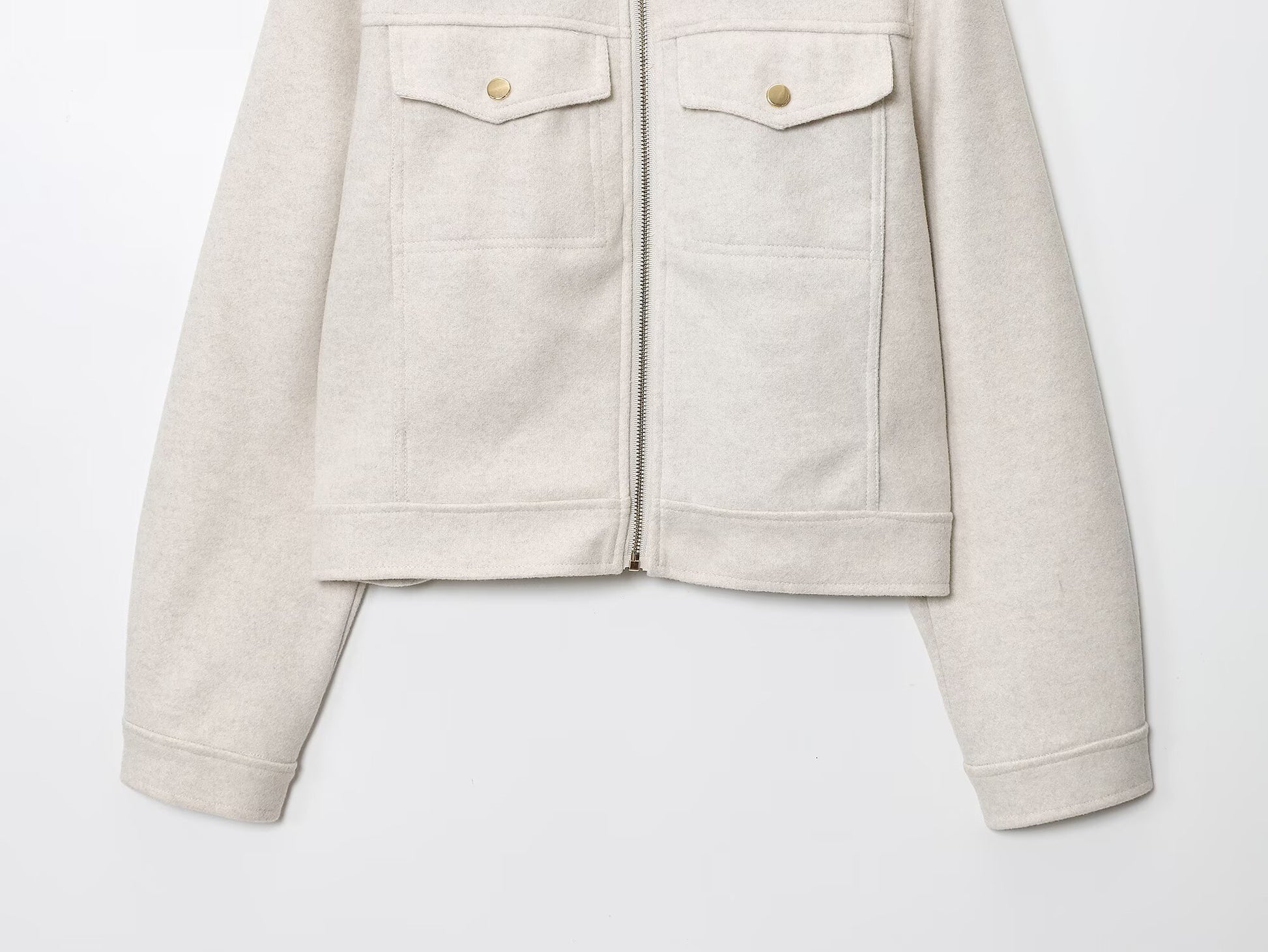 Women's new fashion long sleeved soft textured zipper jacket Coat