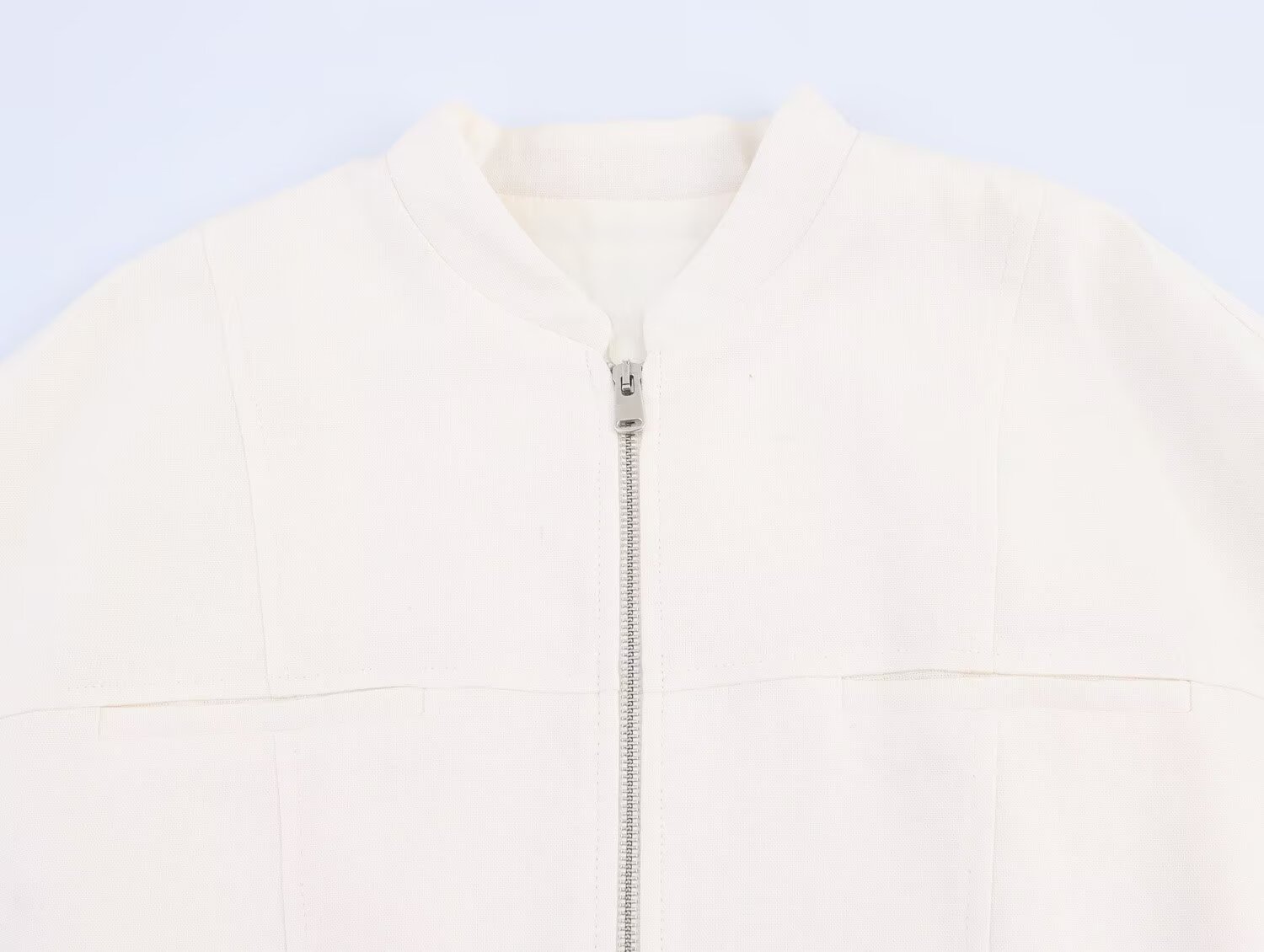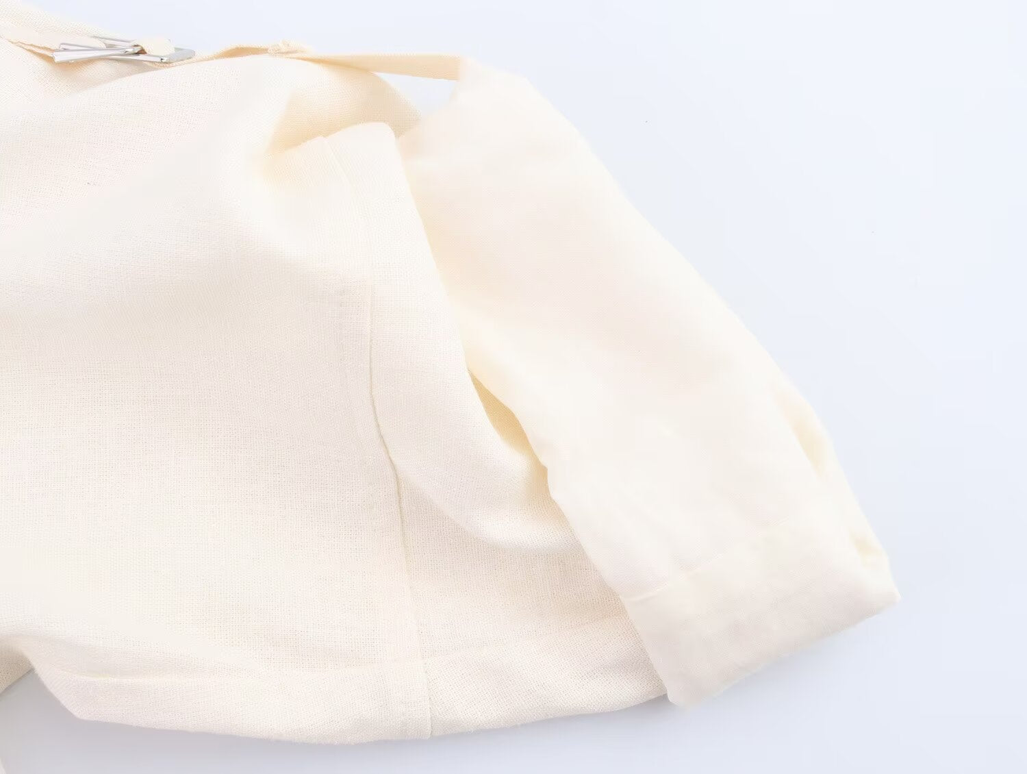 Women's new fashion loose linen blend rollable sleeve jacket coat