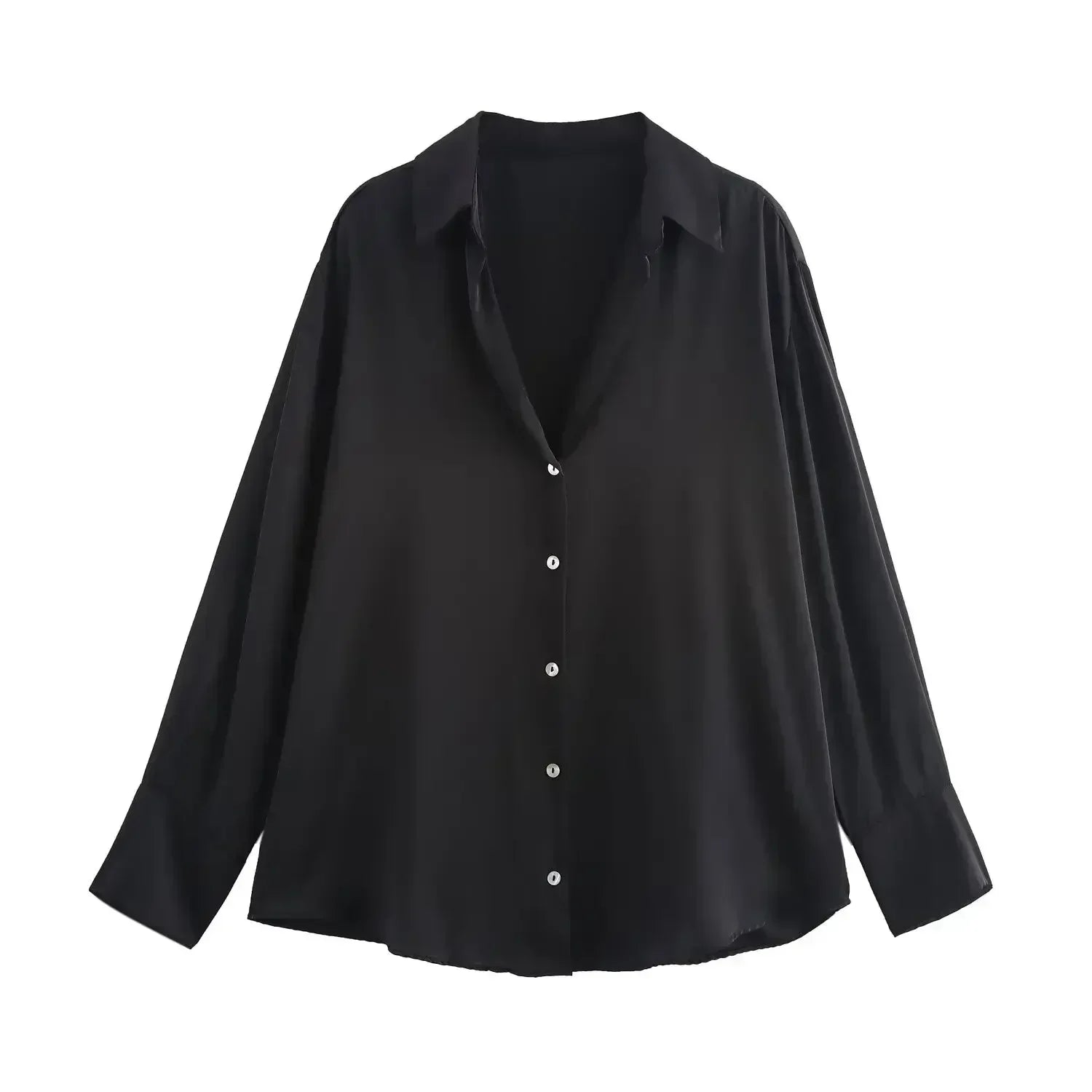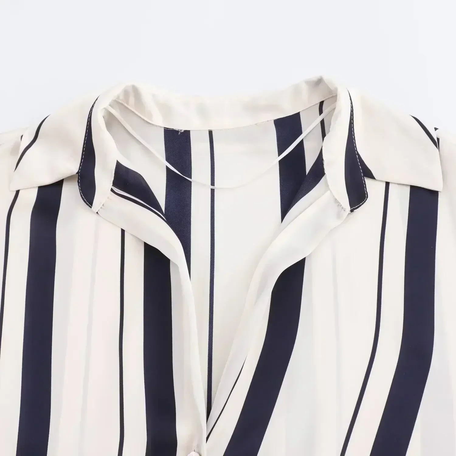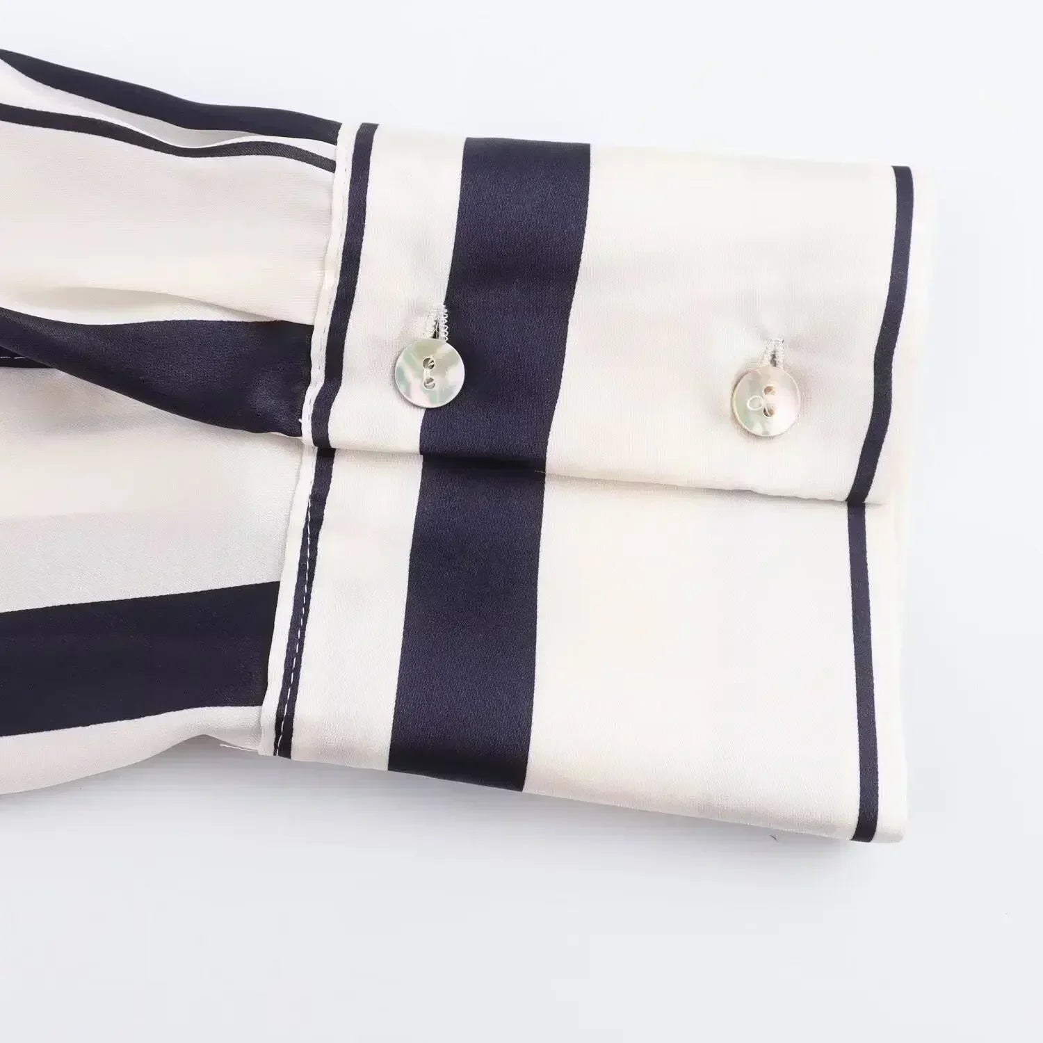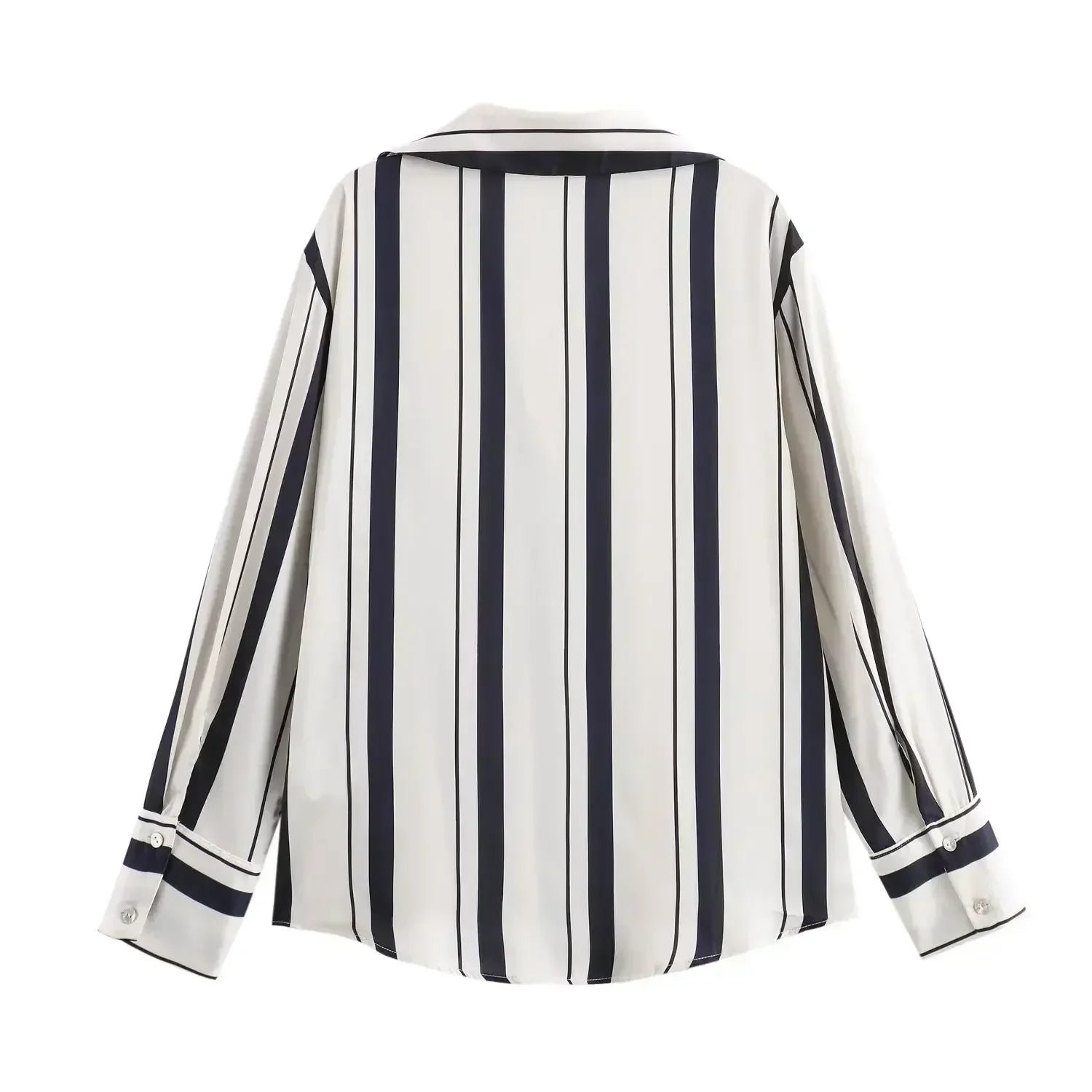 Women's new fashion loose printed striped shirt casual single breasted satin shirt retro long sleeved women's shirt chic top