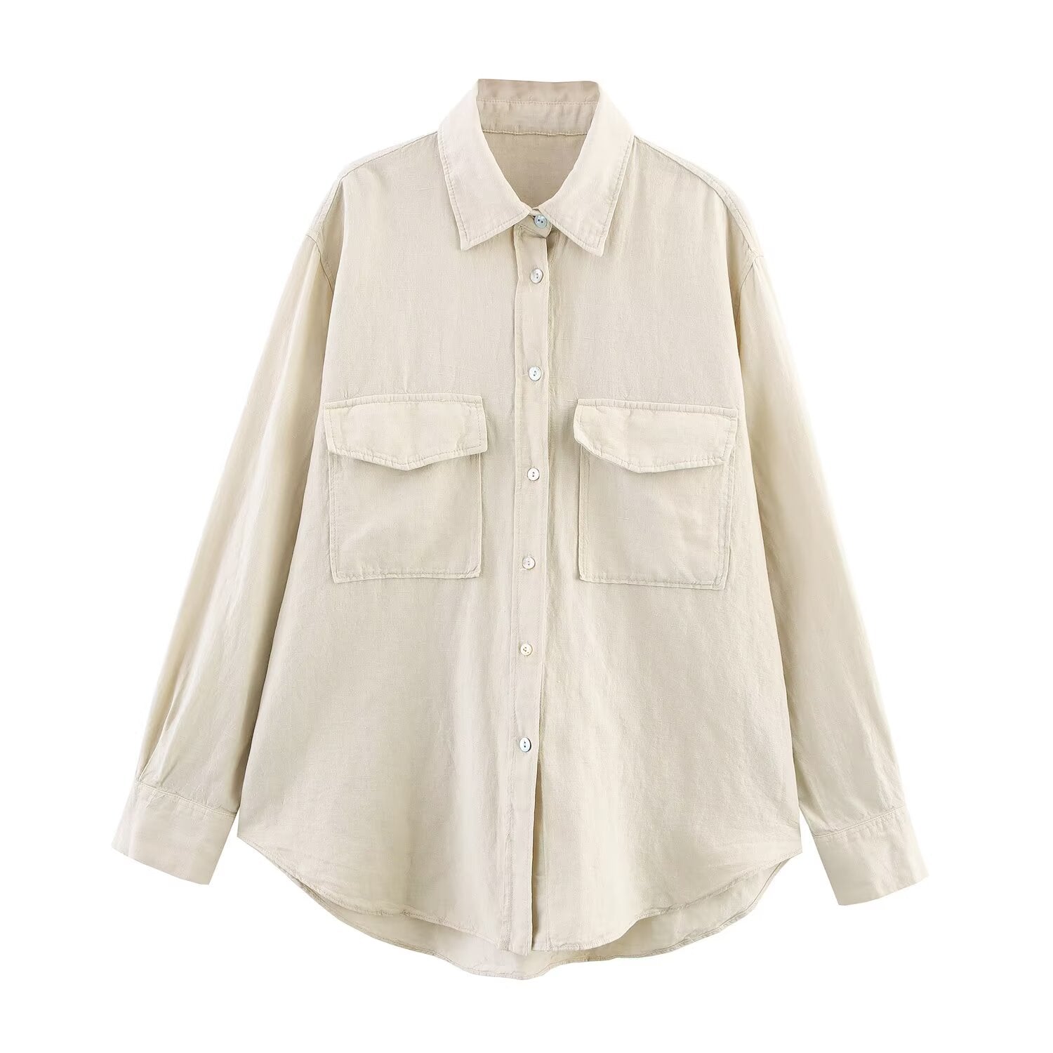 Women's new fashion loose single breasted long sleeved linen blend shirt+Shorts Women's suit
