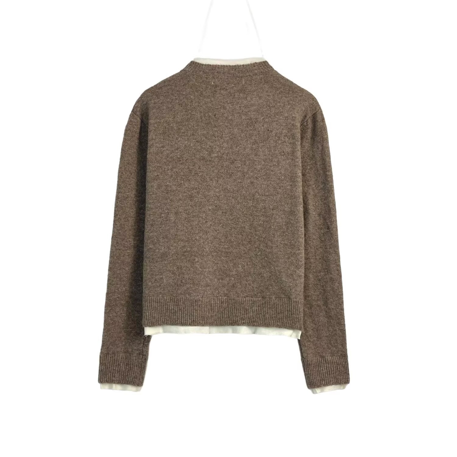 Women's new fashion O Neck long sleeved contrasting knitted cardigan