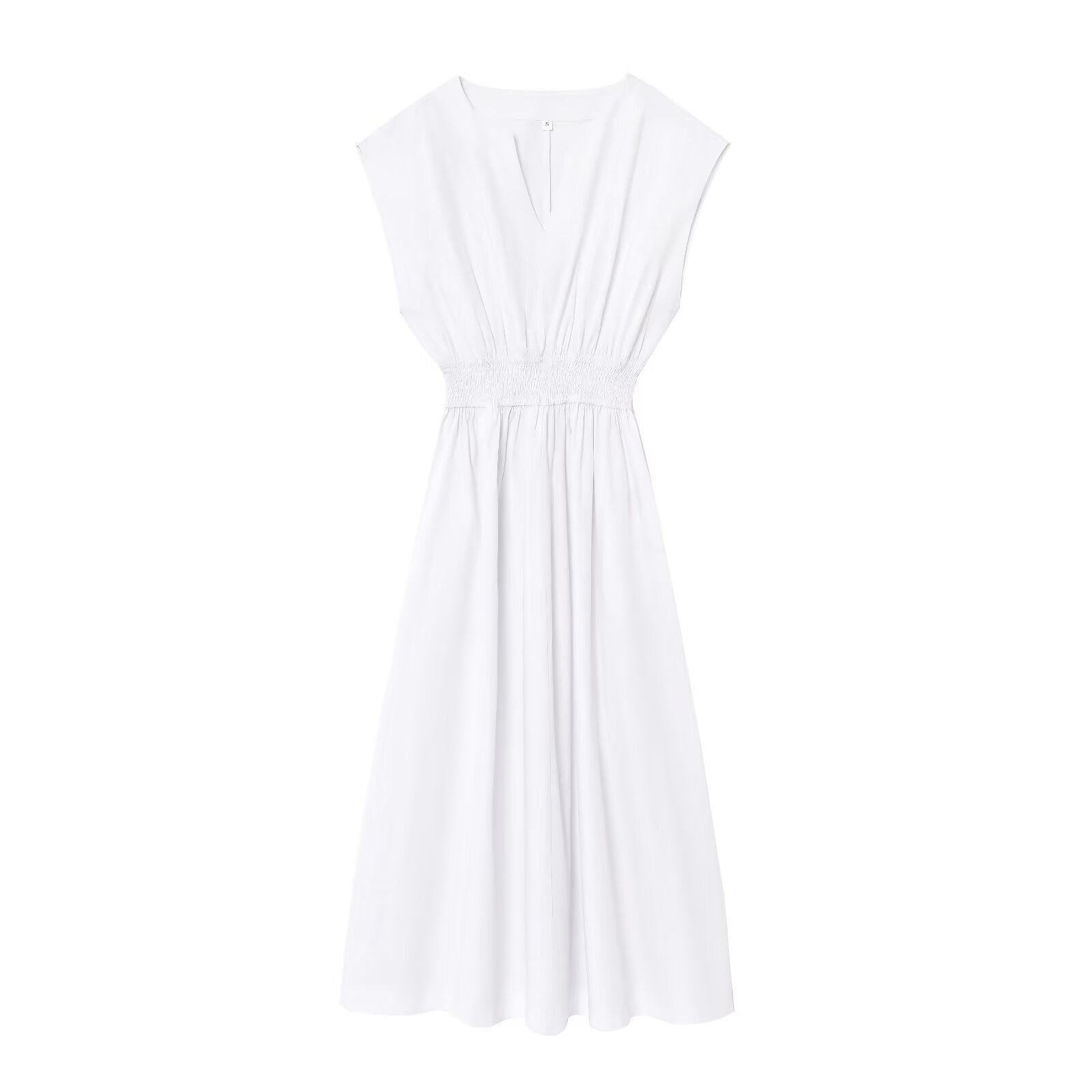 Women's new fashion pleated decoration casual V-neck sleeveless MIDI dress