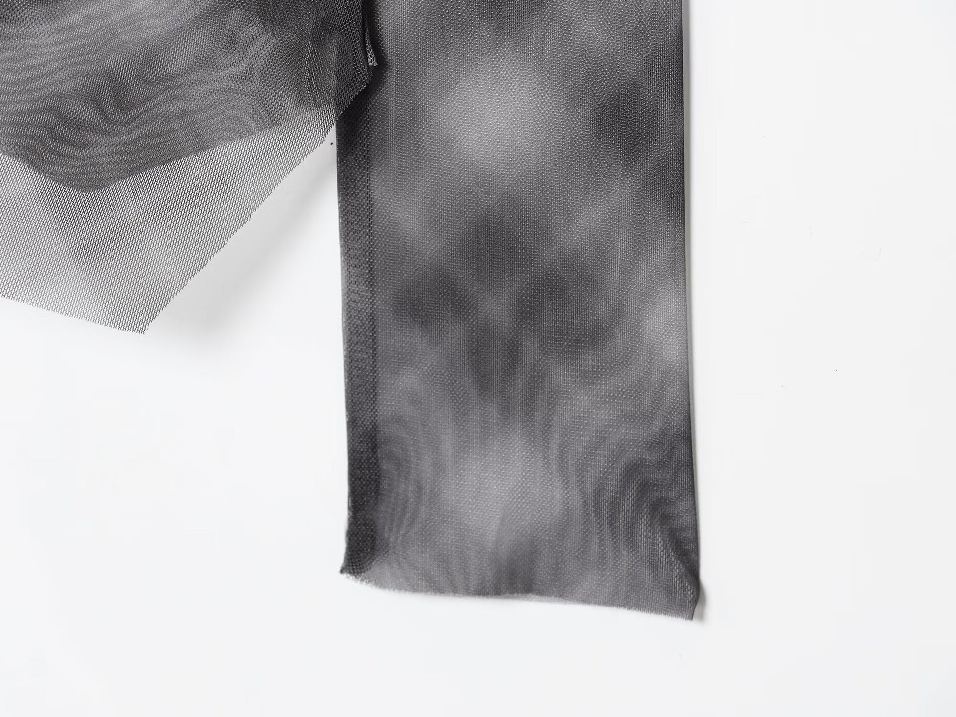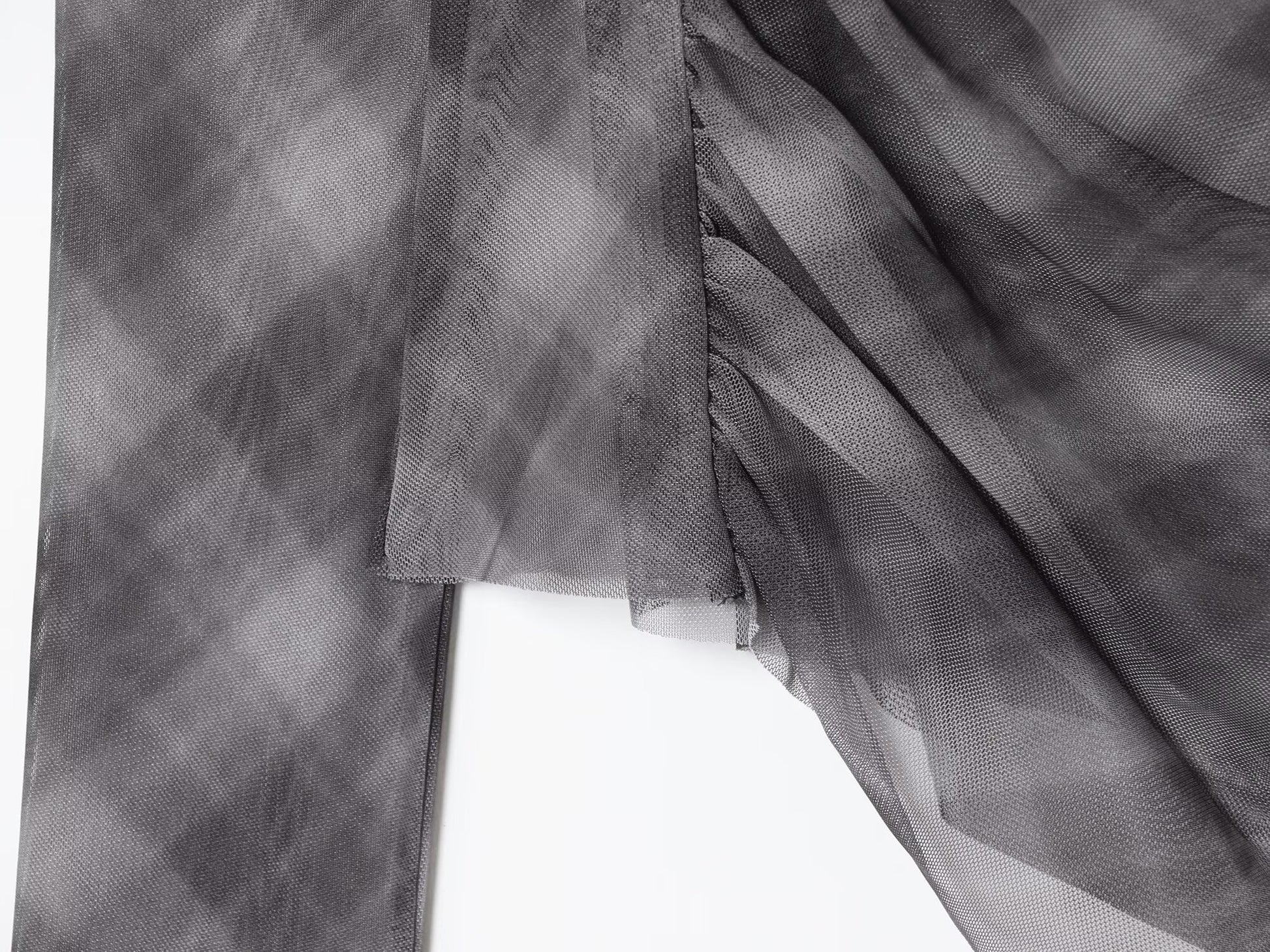 Women's new fashion pleated design slim plaid tulle T-shirt