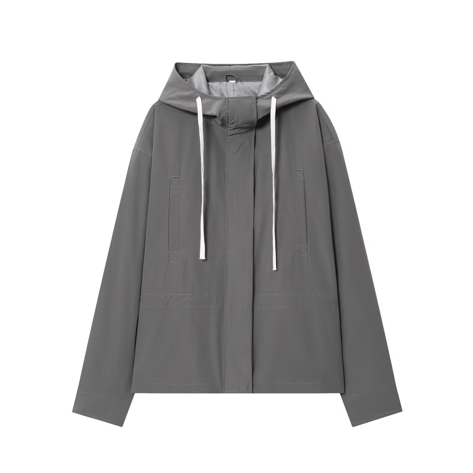 Women's New fashion Retractable waist design loose hooded jacket Coat + shorts suit