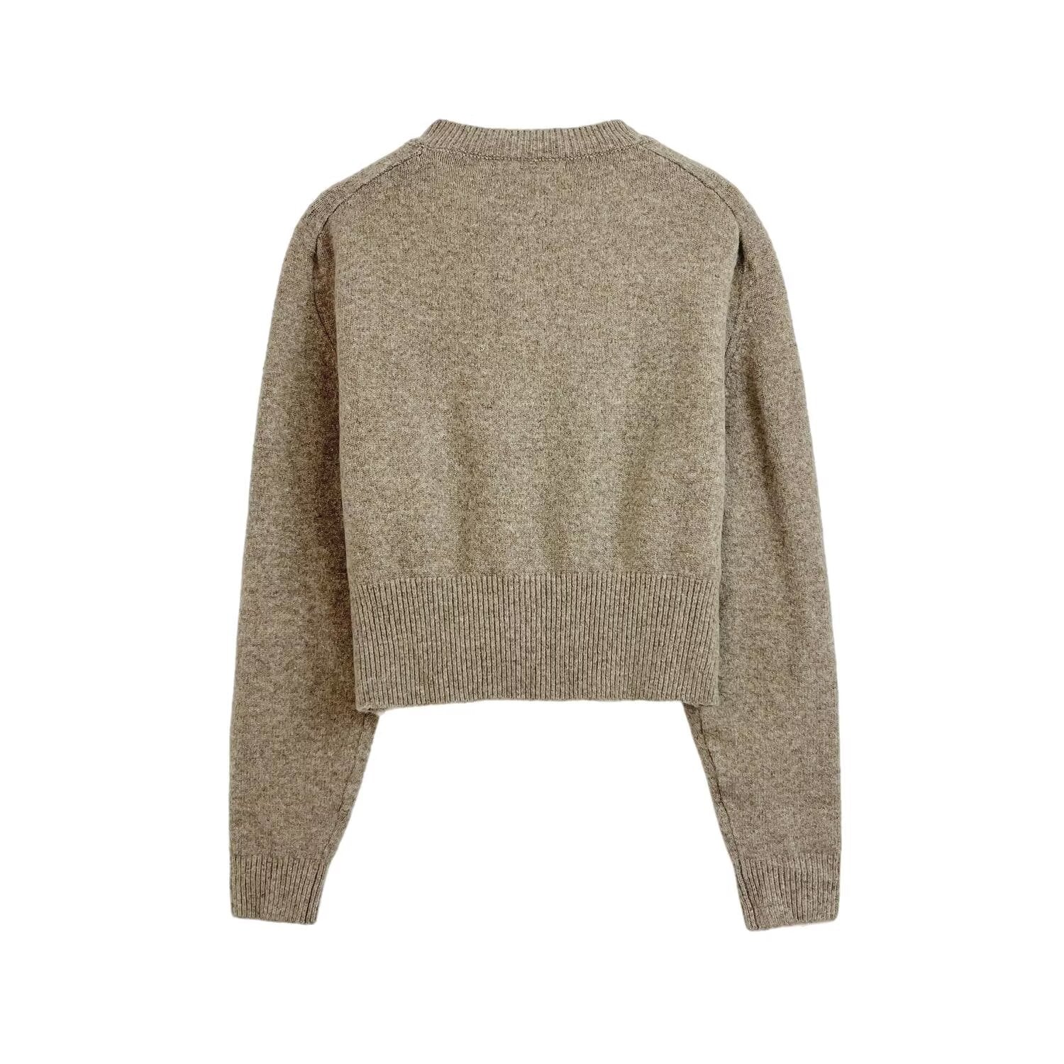 Women's new fashion short O-Neck long sleeved knitted cardigan