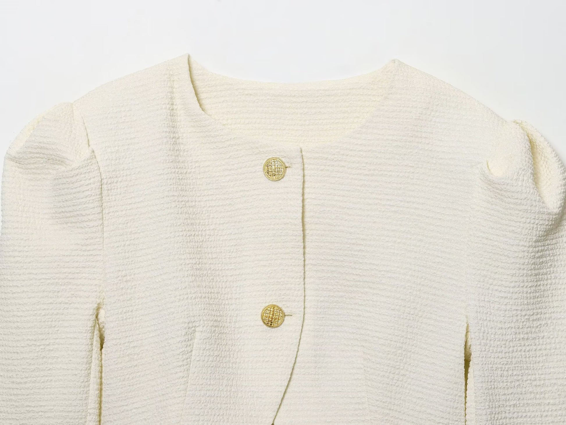 Women's new fashion short puffy sleeve suit jacket+Pants suit