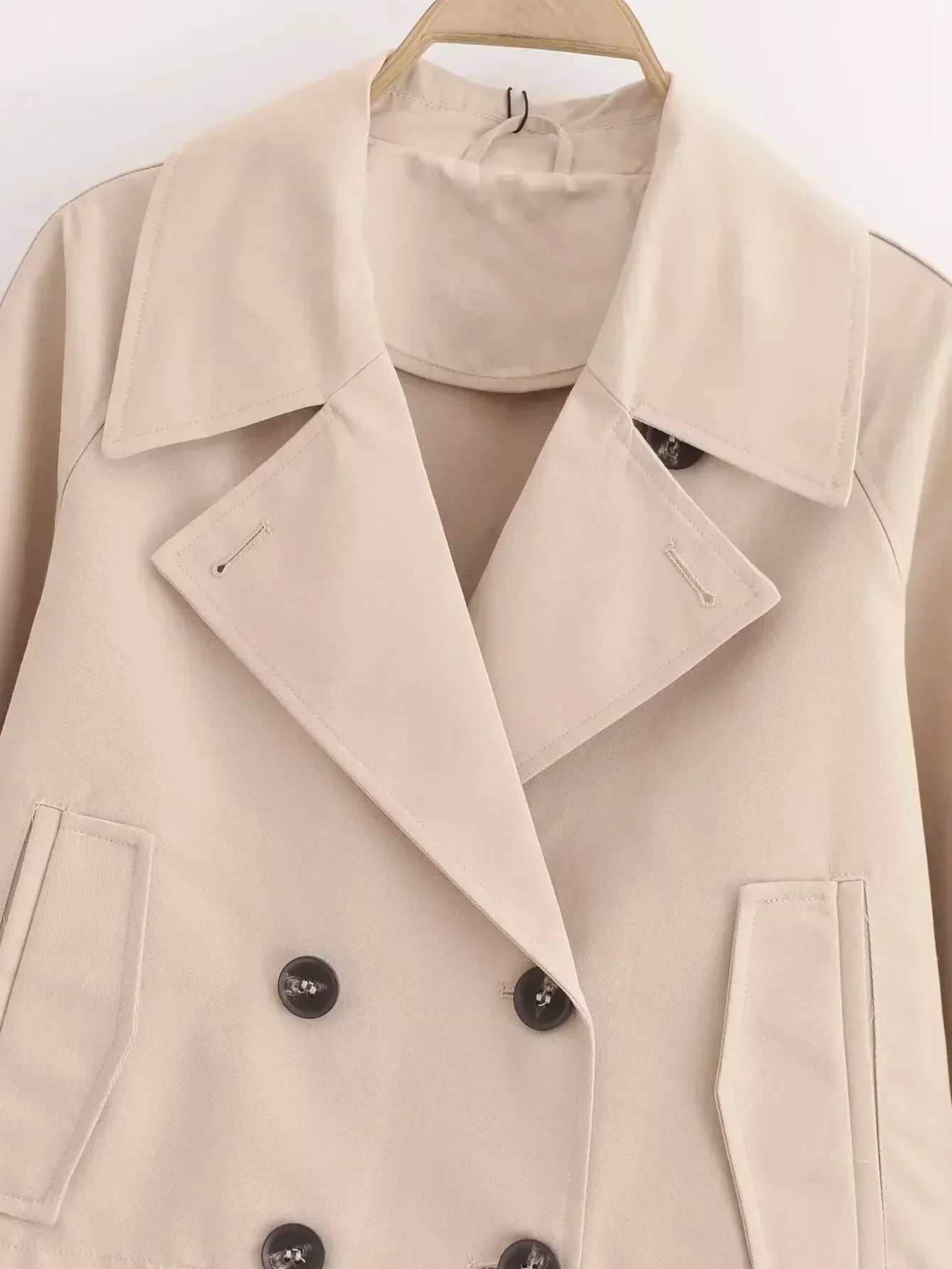 Women's new fashion short windbreaker style casual double breasted jacket coat retro long sleeved pocket women's coat chic top