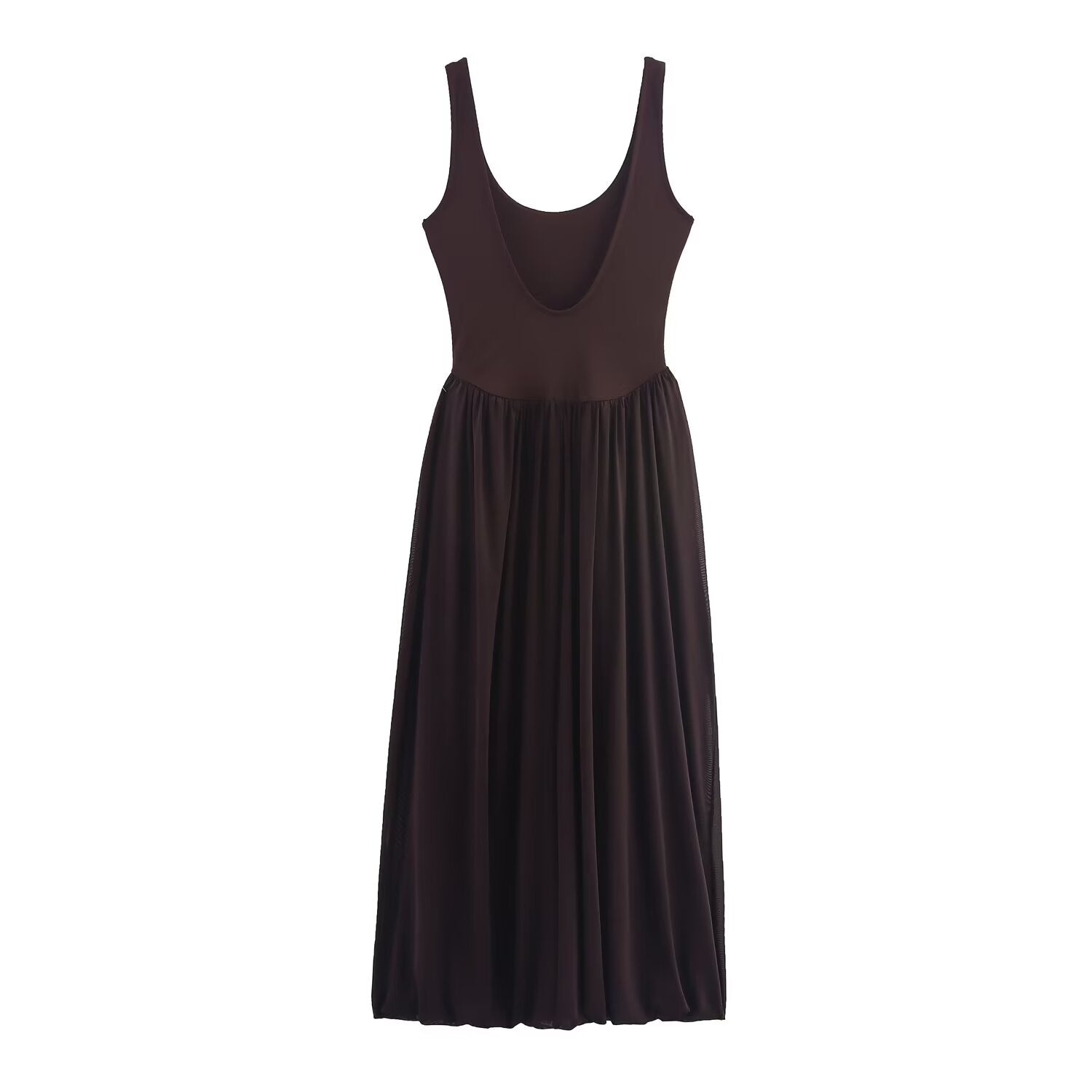 Women's New Fashion Sleeveless tulle Splicing Midi Dress