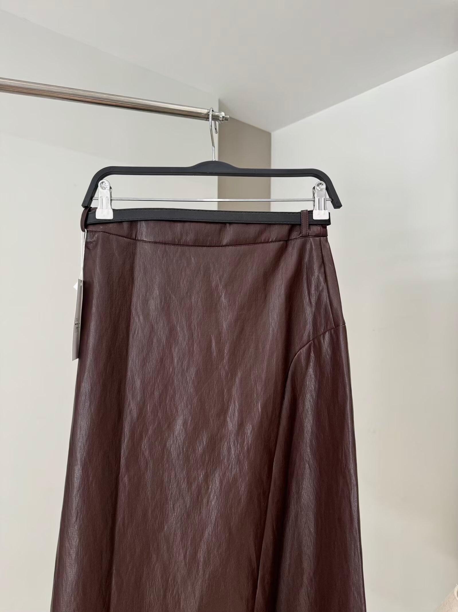 Women's New Fashion With Belt Casual Leather Effect Midi Skirt