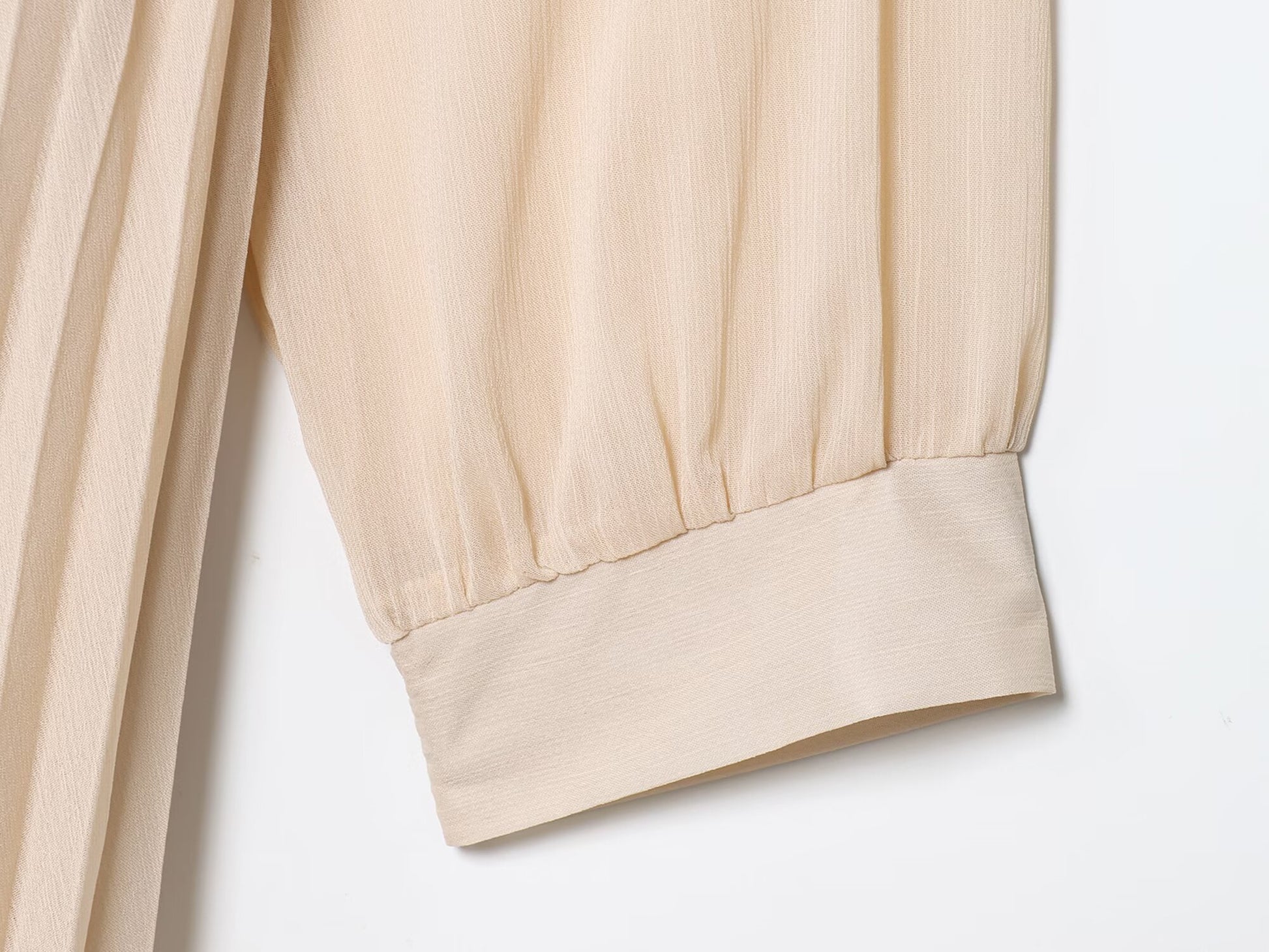 Women's New Fashion With Belt Long Sleeve Pleated Midi Dress