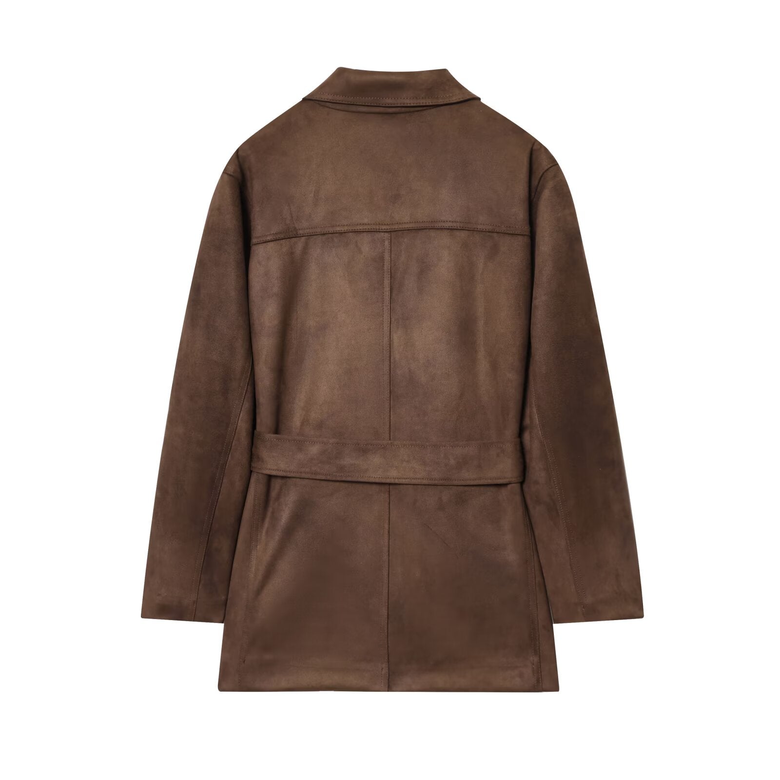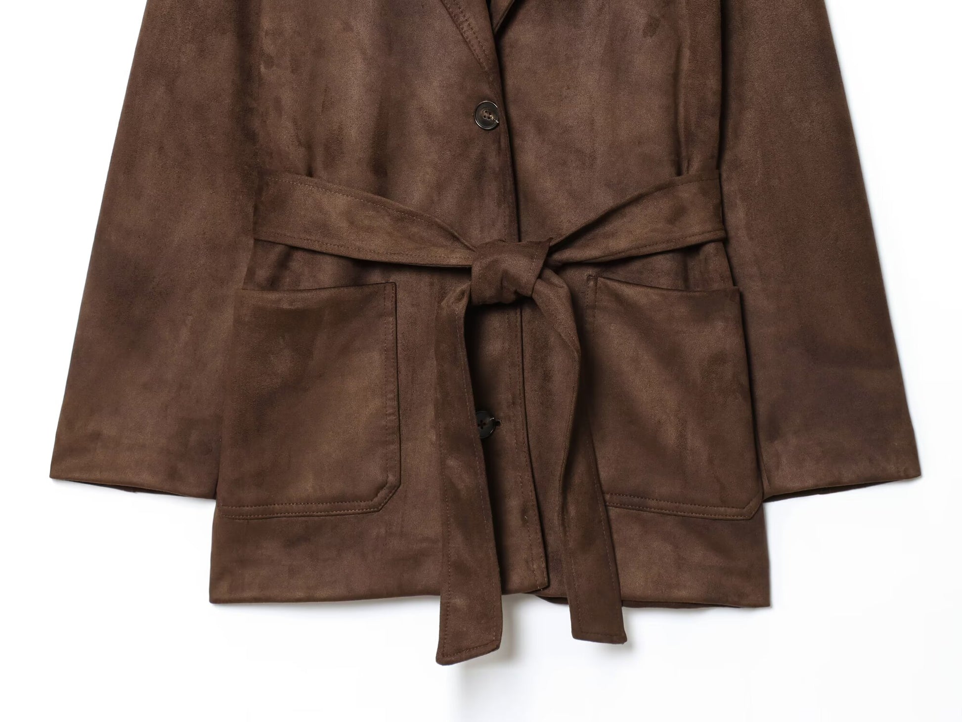 Women's new fashion with Belt loose Anti suede effect jacket Coat