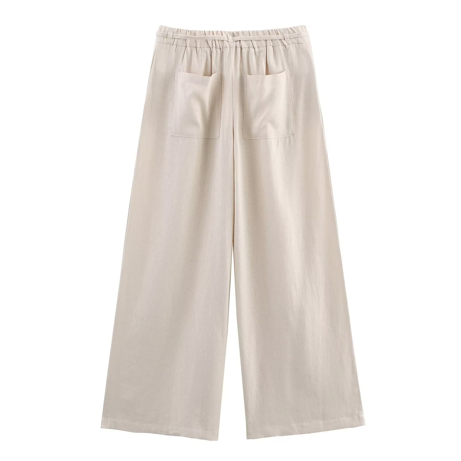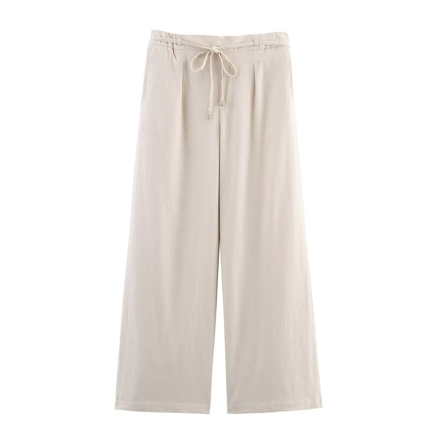 Women's new fashion with Belt loose casual linen blended wide leg pants