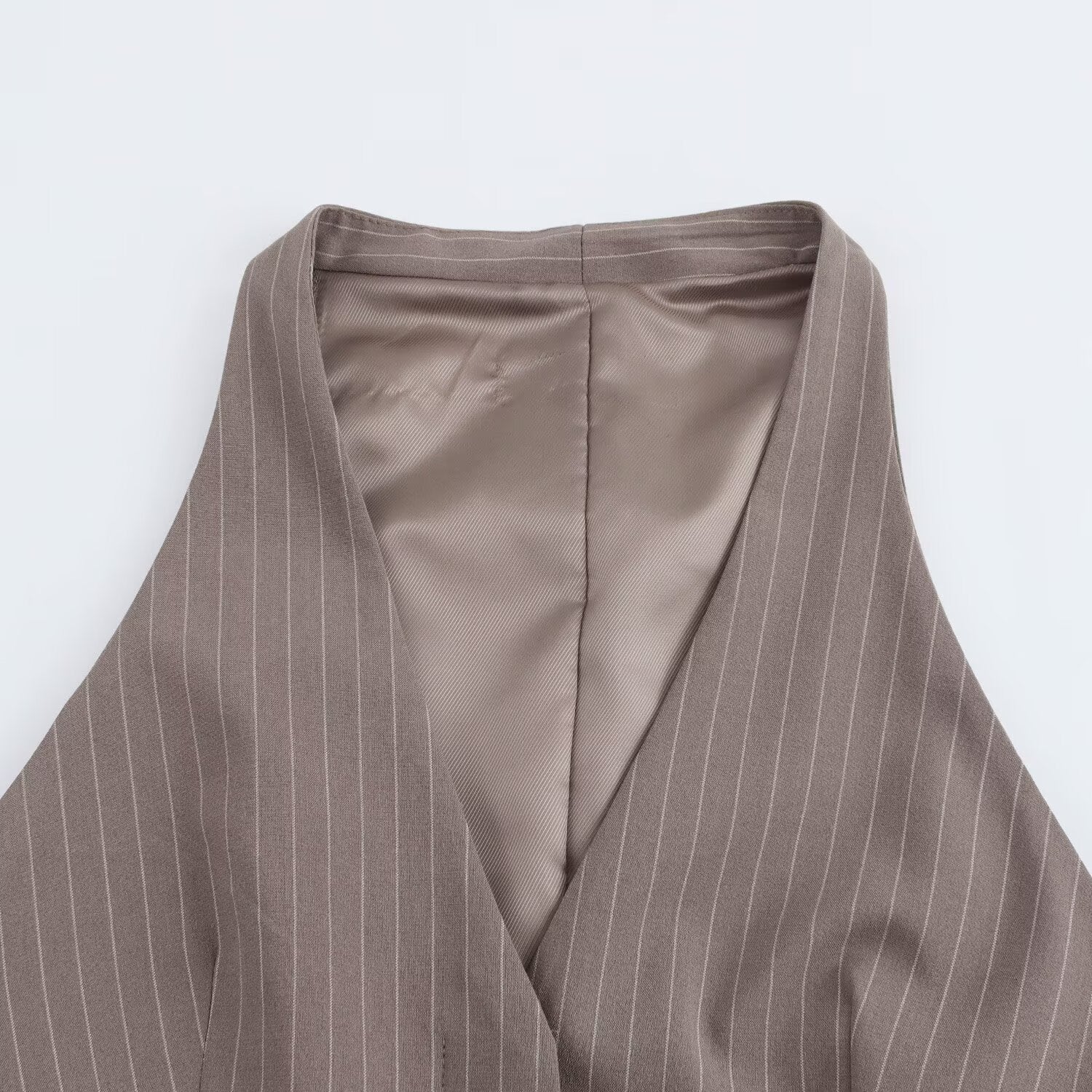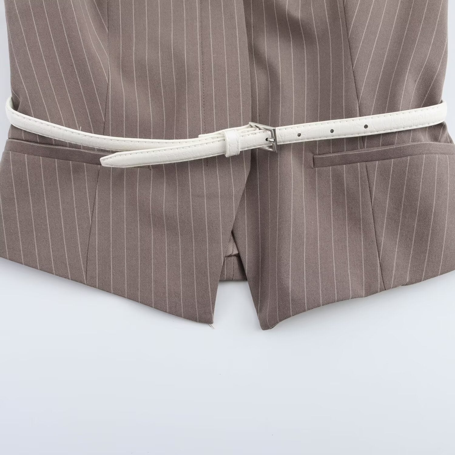Women's new fashion with Belt pocket decoration casual short striped V Neck vest retro sleeveless button up women's vest chic top