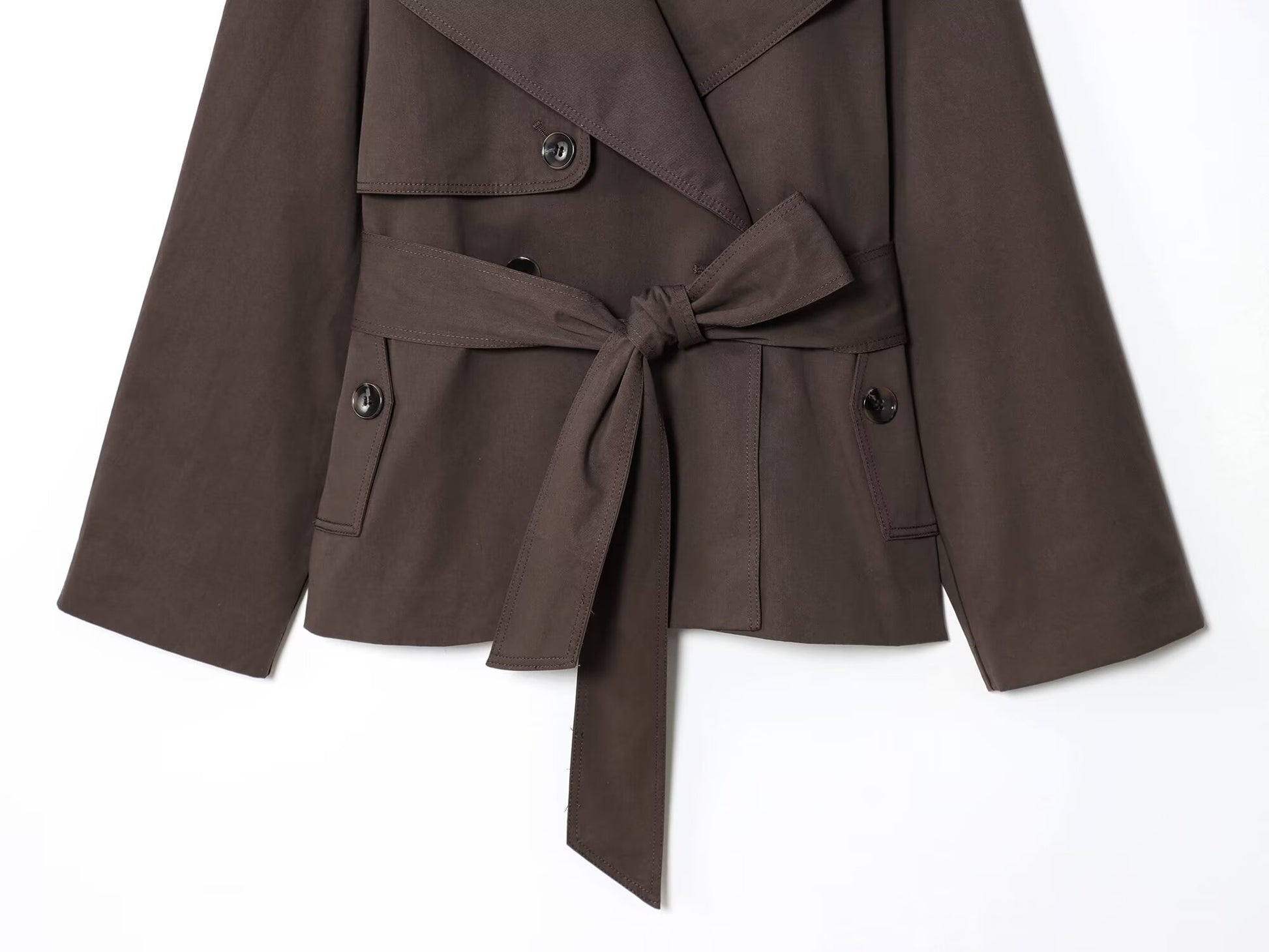 Women's New Fashion With Belt Short Double breasted Windbreaker Coat