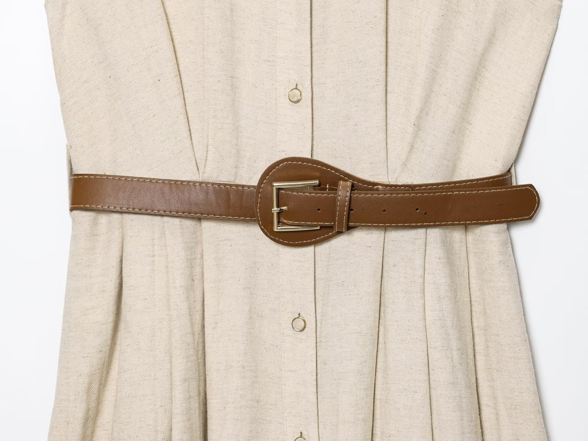 Women's New Fashion With Belt Sleeveless Linen Blended Midi Dress