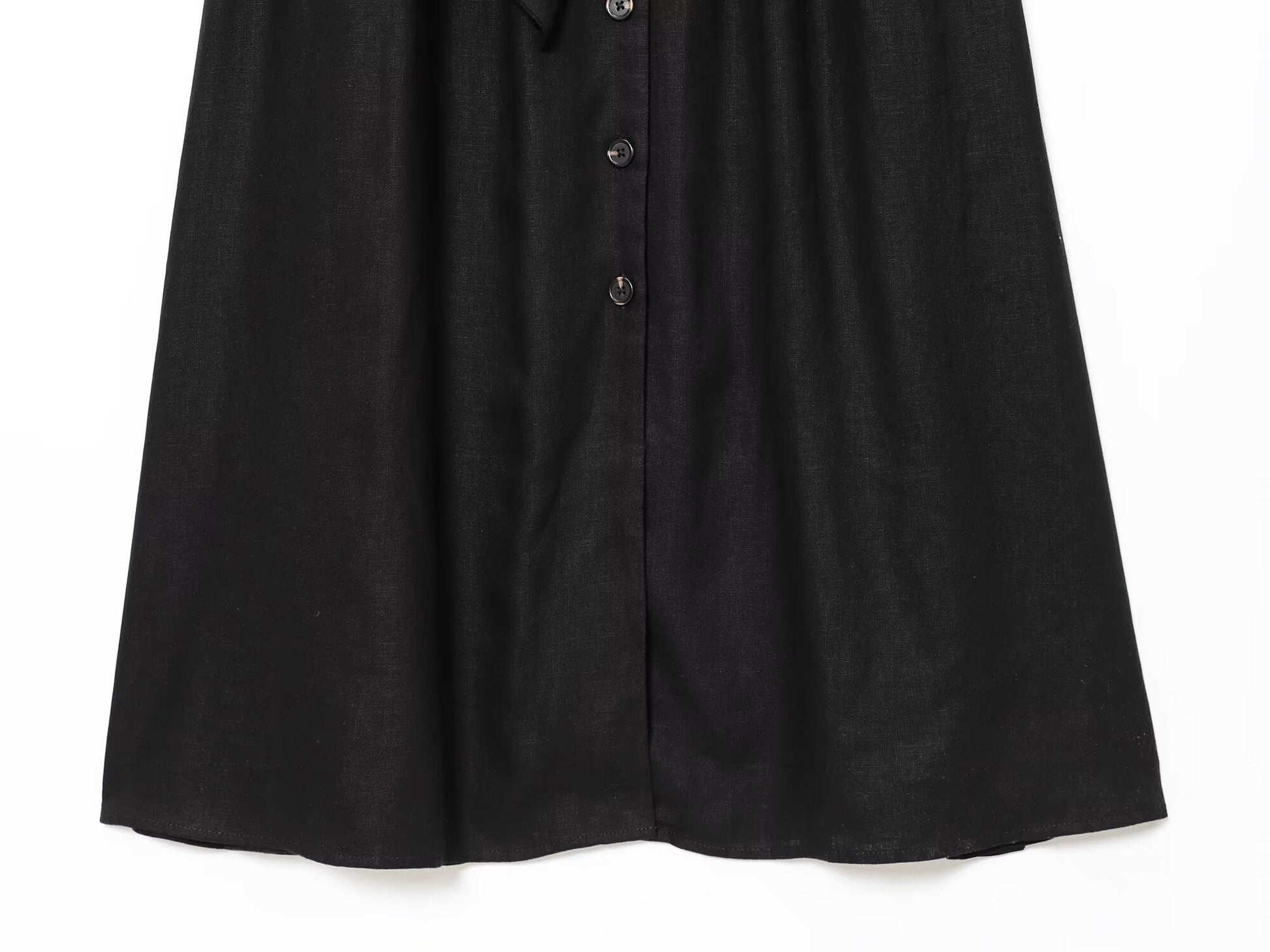 Women's New Fashion With Belt Sleeveless V-neck Linen Blended Midi Dress