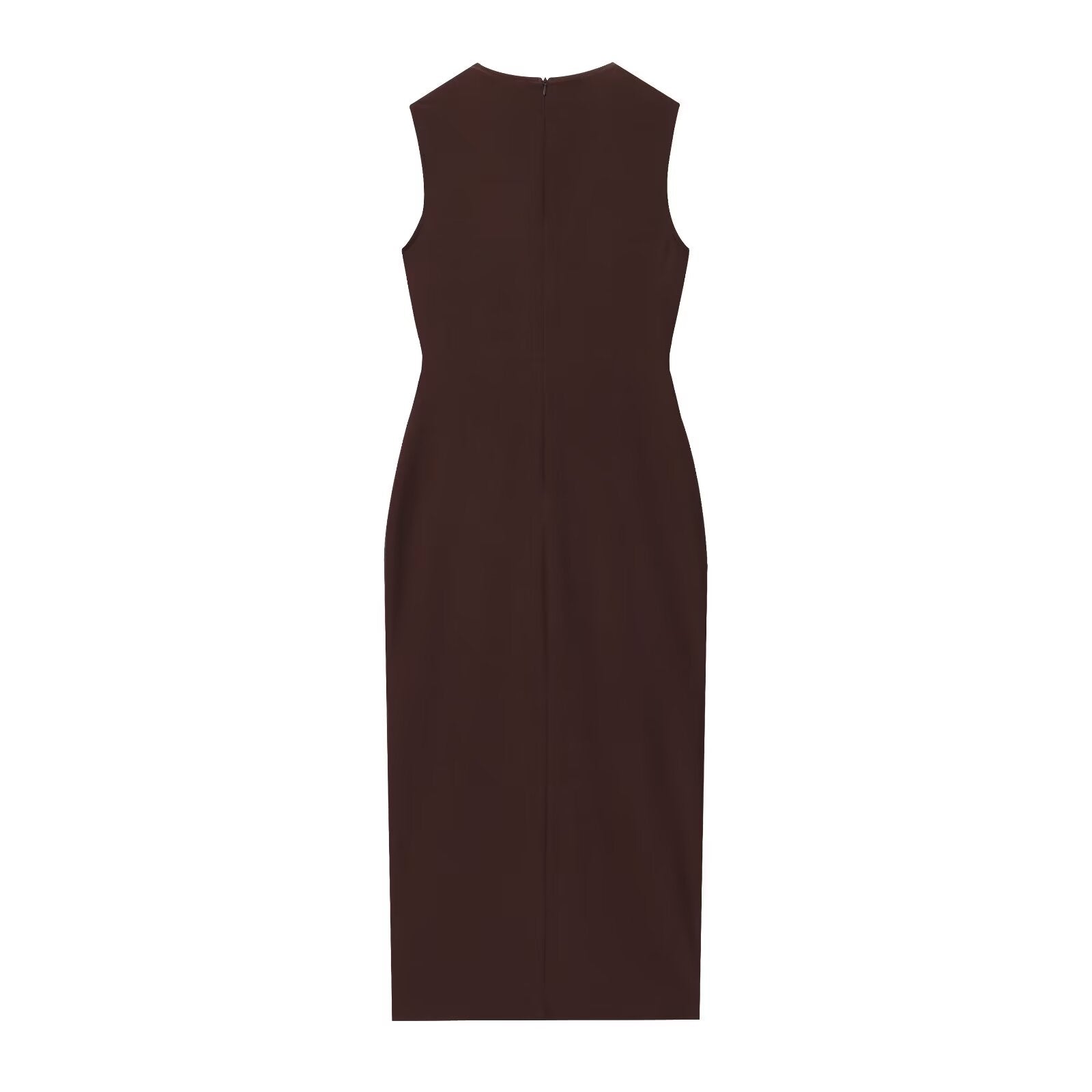 Women's New Fashion With Belt Sleeveless V-neck Midi Dress