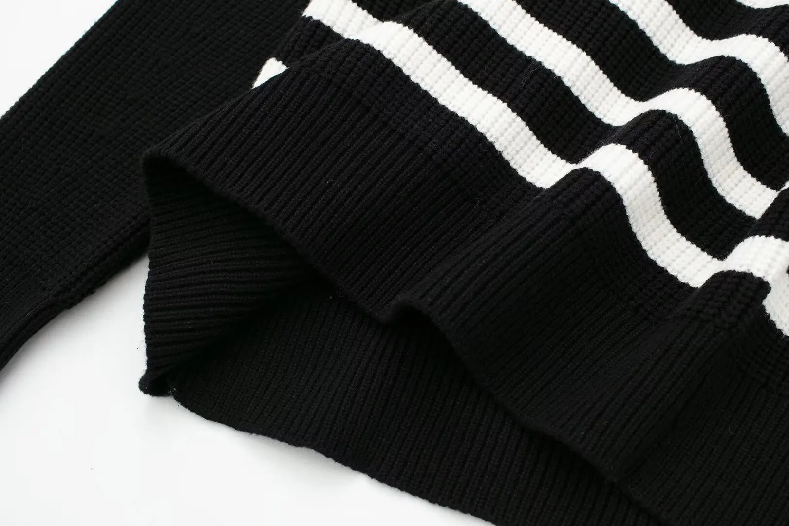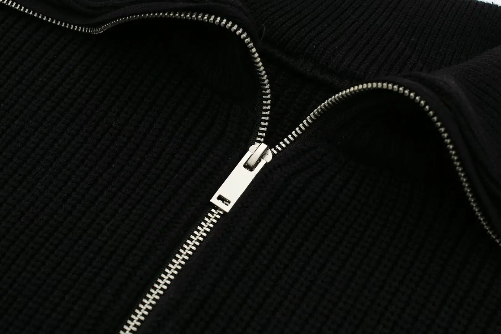 Women's New Fashion Zipper Decoration Casual Wool Blended Striped Knitted Sweater Retro Long Sleeve Women's Pullovers Chic Top