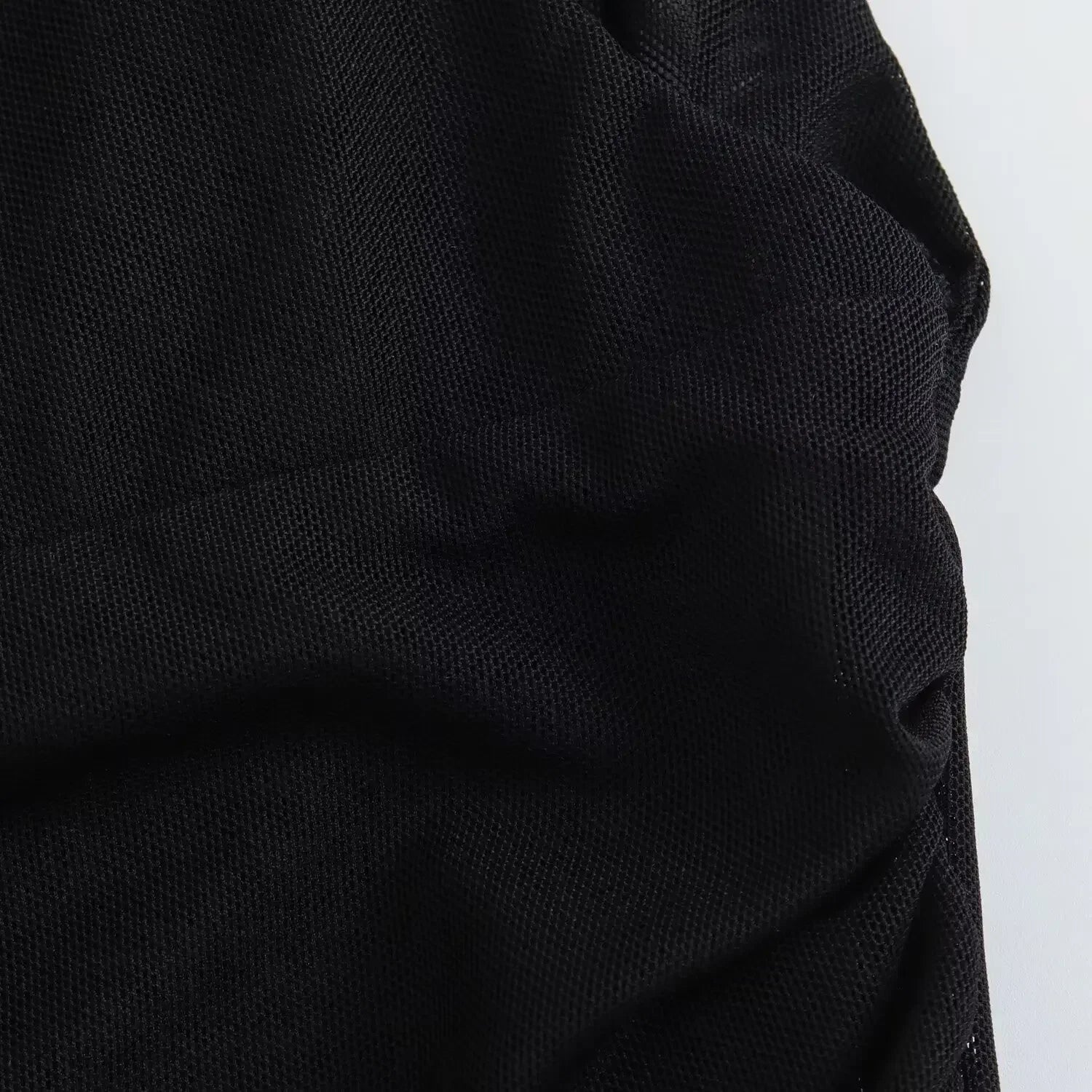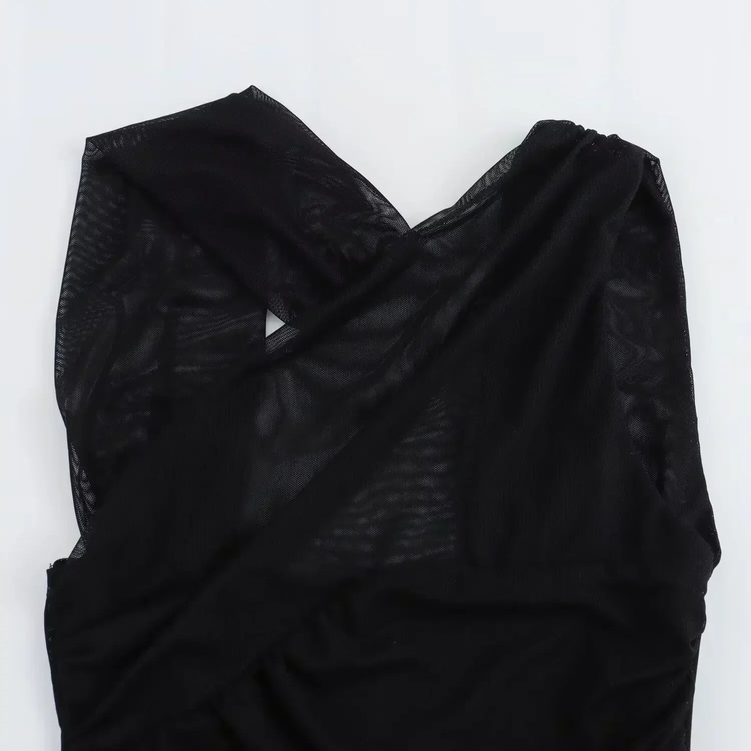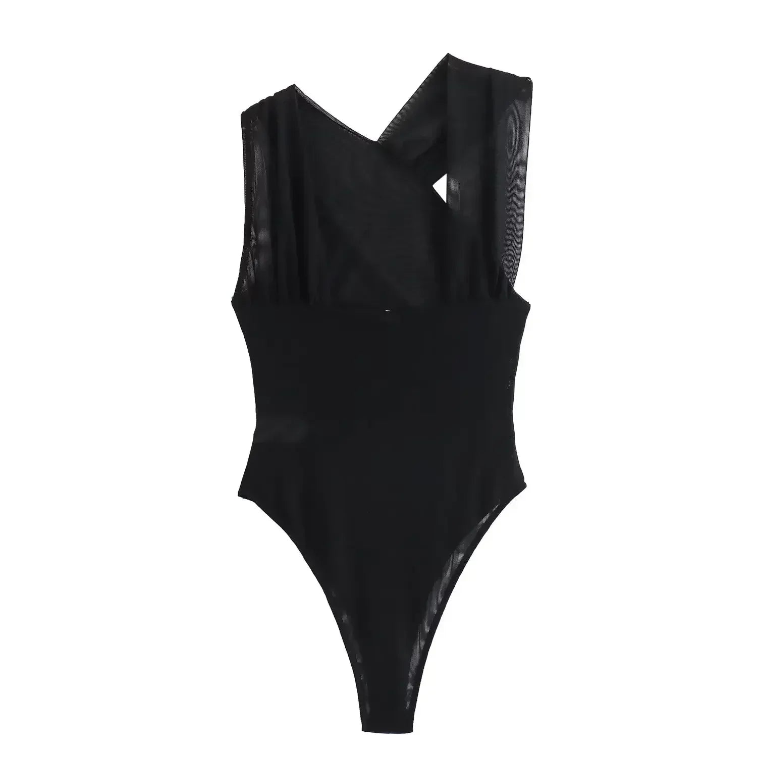 Women's Summer New Fashion Pleated Decoration Tight Tulle Off Shoulder Bodysuit Retro Sleeveless Off Back Women's jumpsuit