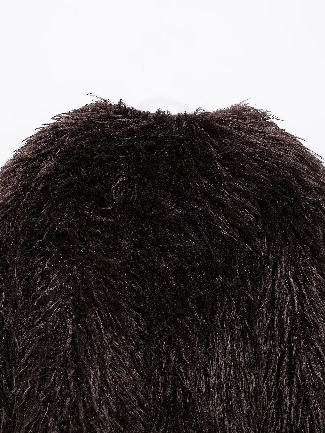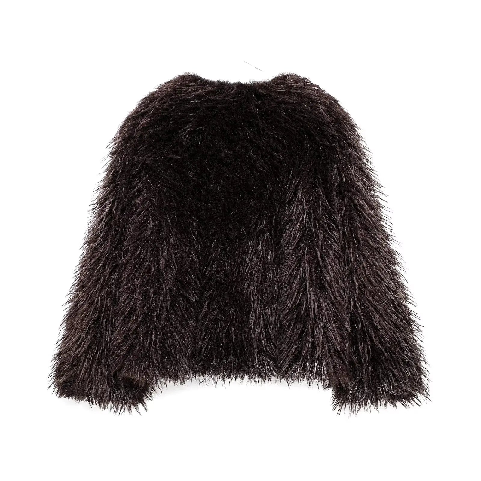 Women's winter Fashion loose faux fur effect warm V Neck Blended Coat retro long sleeved button up women's Coat Chic top